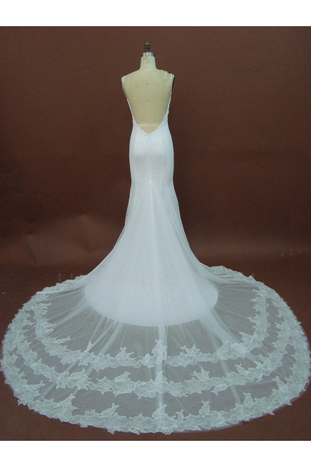 Sexy Trumpet/Mermaid Spaghetti Straps Chapel Train Lace Bridal Wedding Dresses WD010149