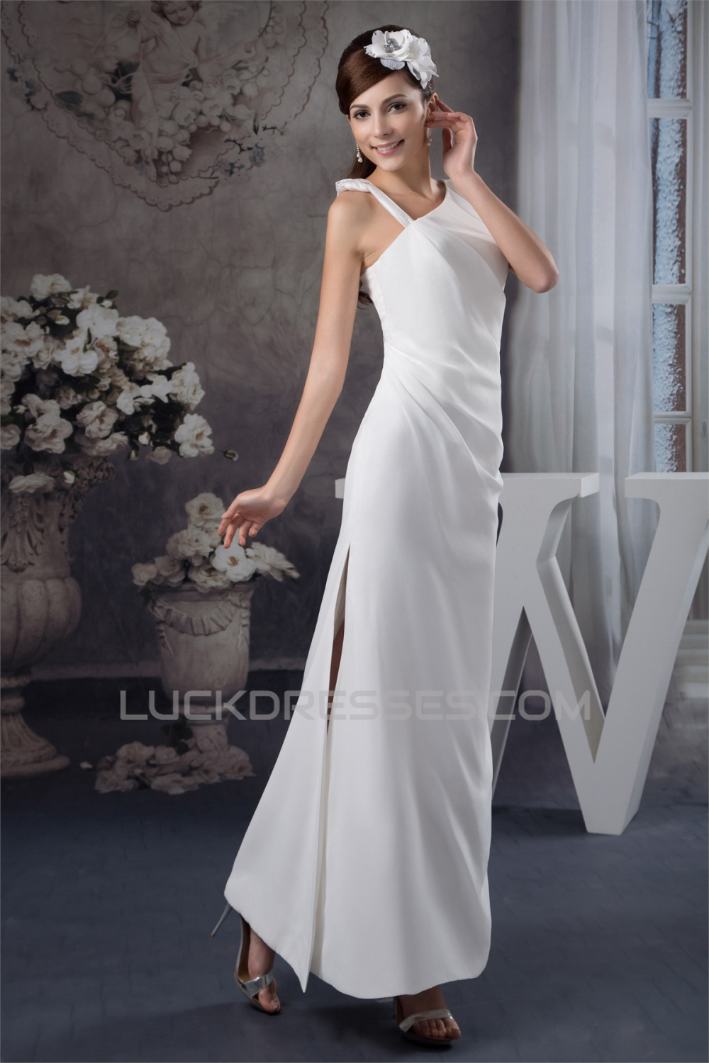 Sheath/COlumn Floor-Length Straps Wedding Dresses 2030711