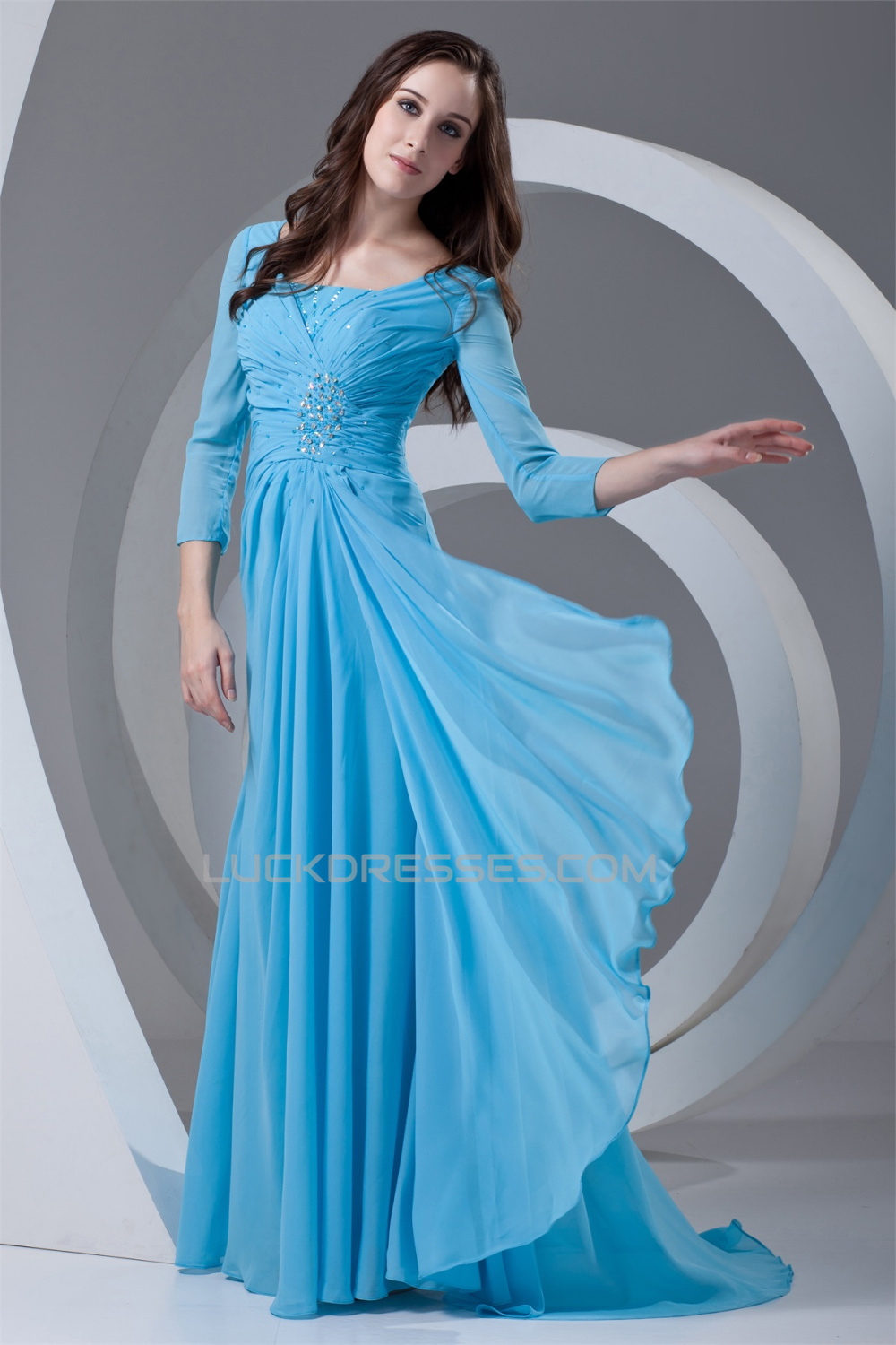 Sheath/Column 3/4 Sleeve Beaded Chiffon Square Mother of the Bride Dresses 2040173