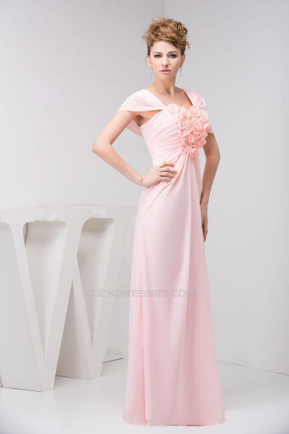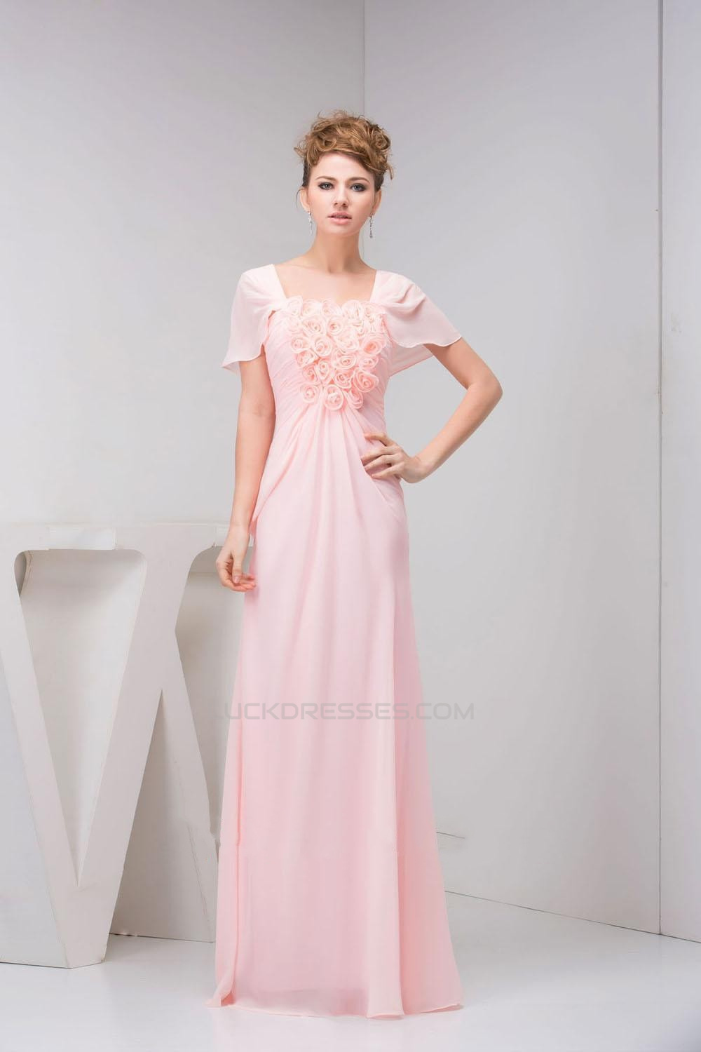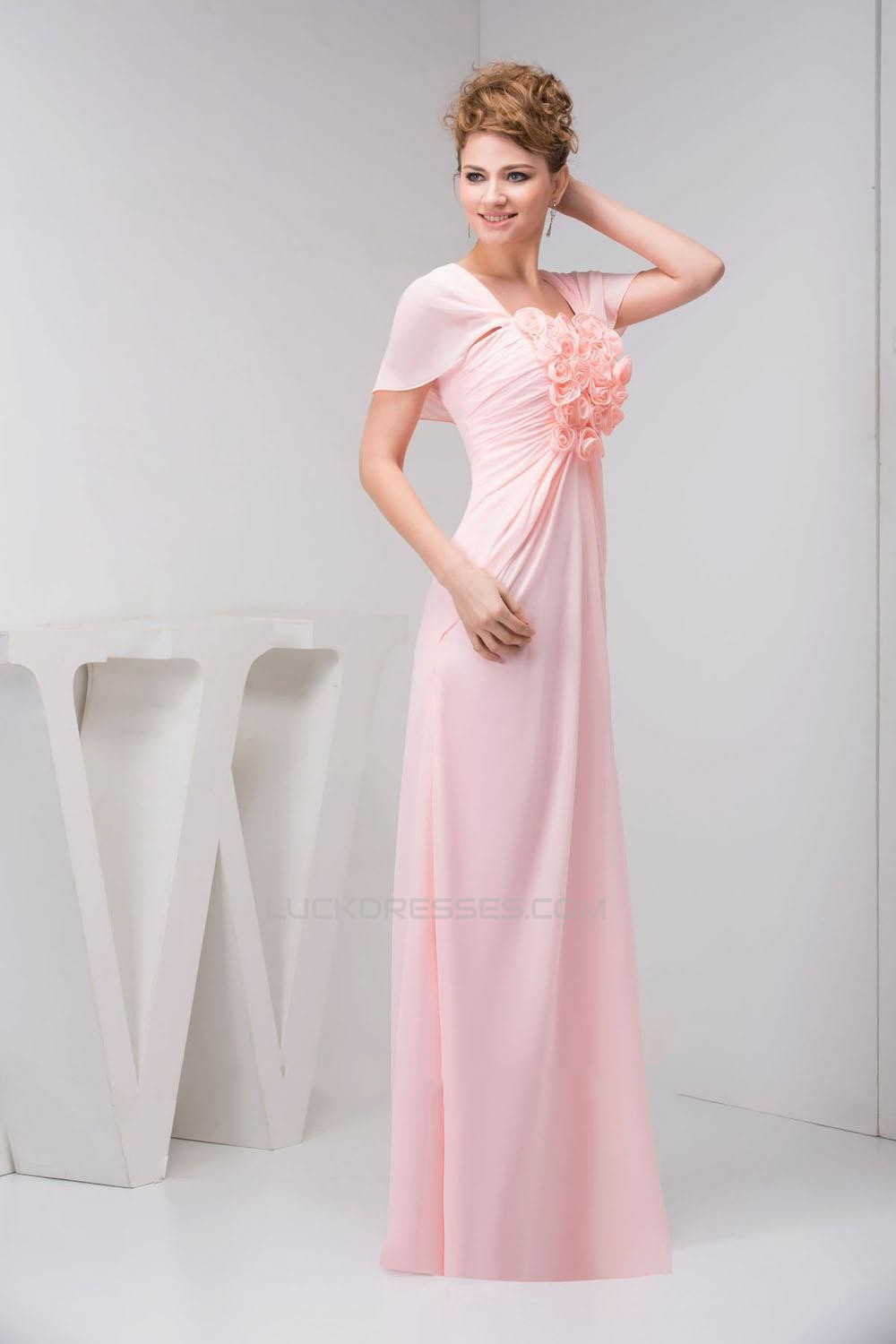 Sheath/Column Cap Sleeve Pink Long Chiffon Prom Evening Formal Dresses ED010918