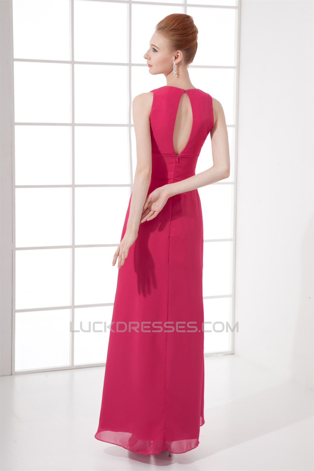 Sheath/Column Floor-Length Pleats V-Neck Formal Evening Bridesmaid Dresses 02020836