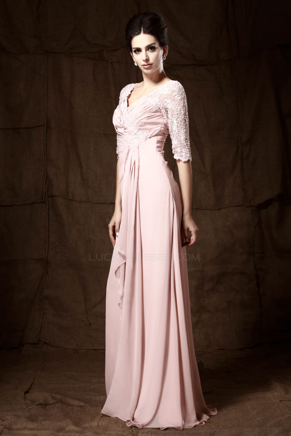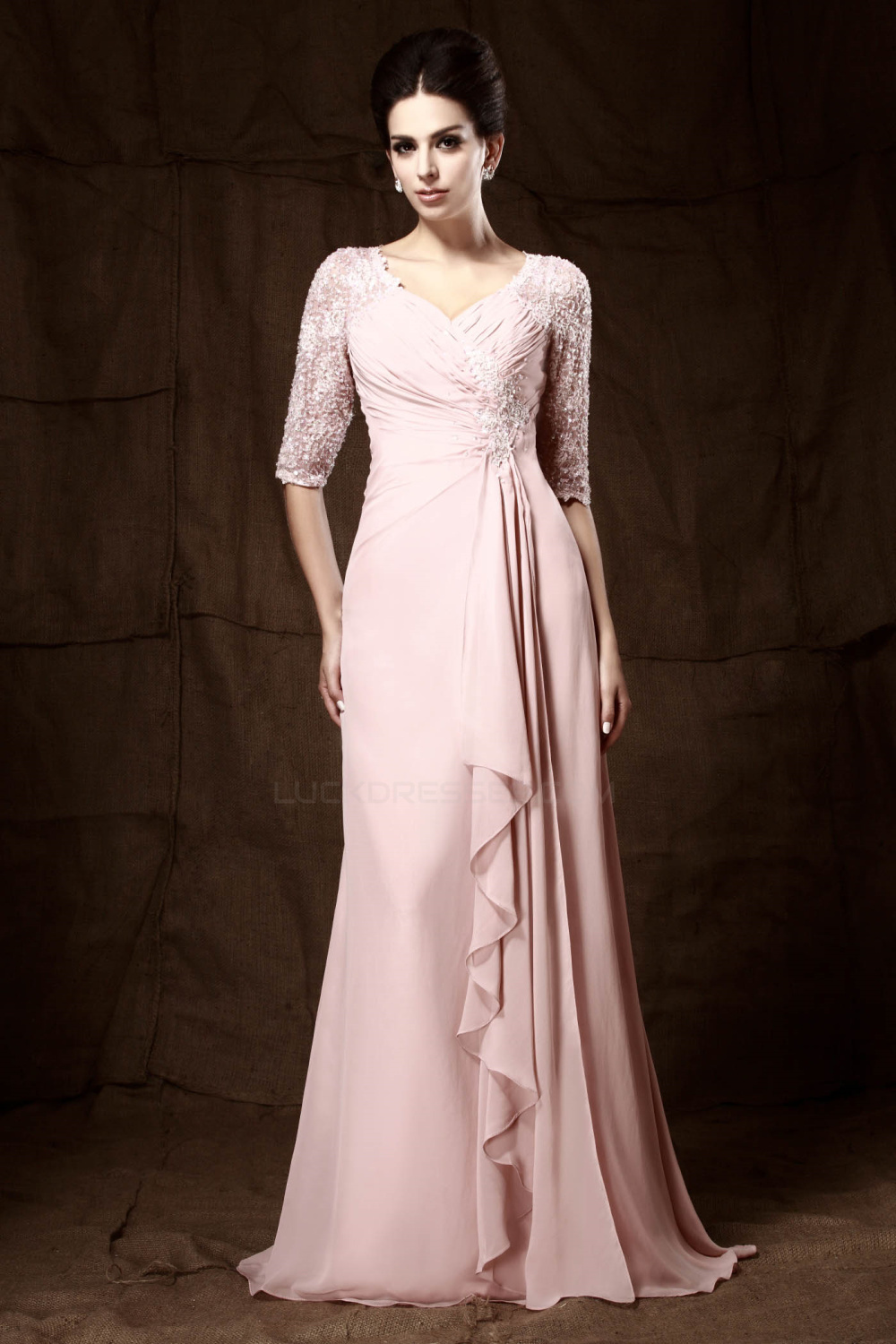 Sheath/Column Half Sleeve Beaded Long Chiffon Mother of the Bride Dresses M010023