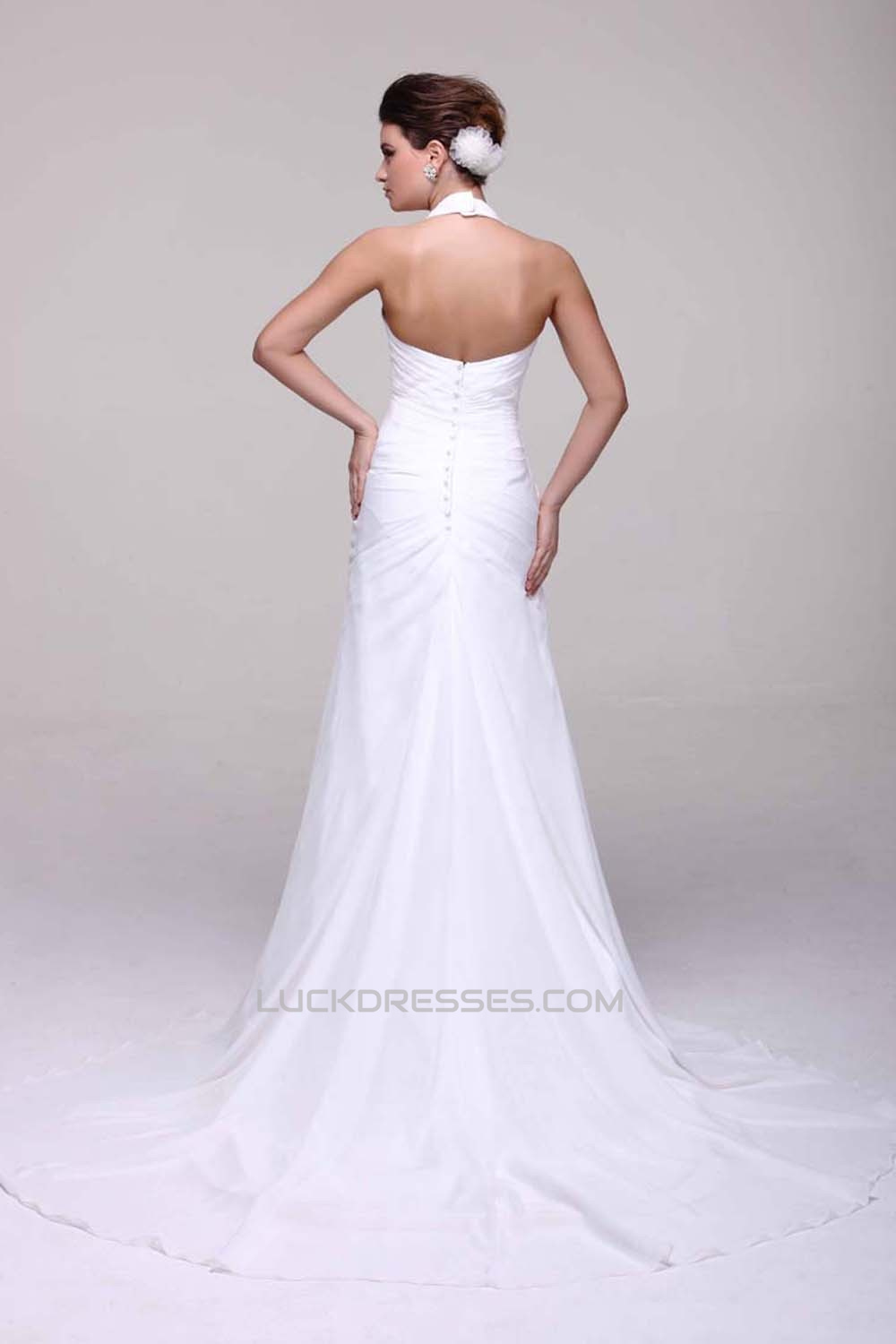 Sheath/Column Halter Beaded Chiffon Bridal Wedding Dresses WD010521
