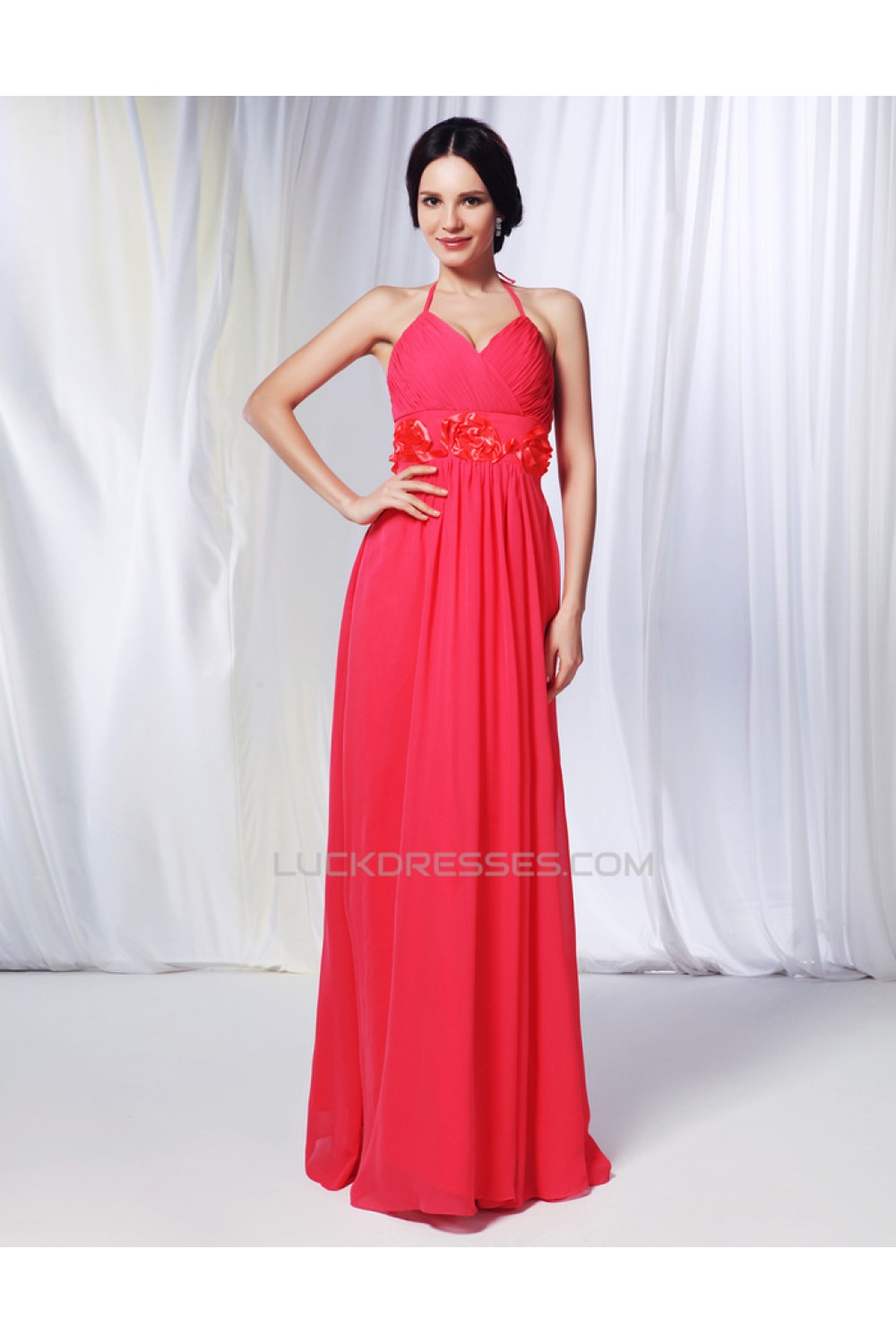 Sheath/Column Halter Long Chiffon Prom Evening Formal Dresses Bridesmaid Dresses ED010996
