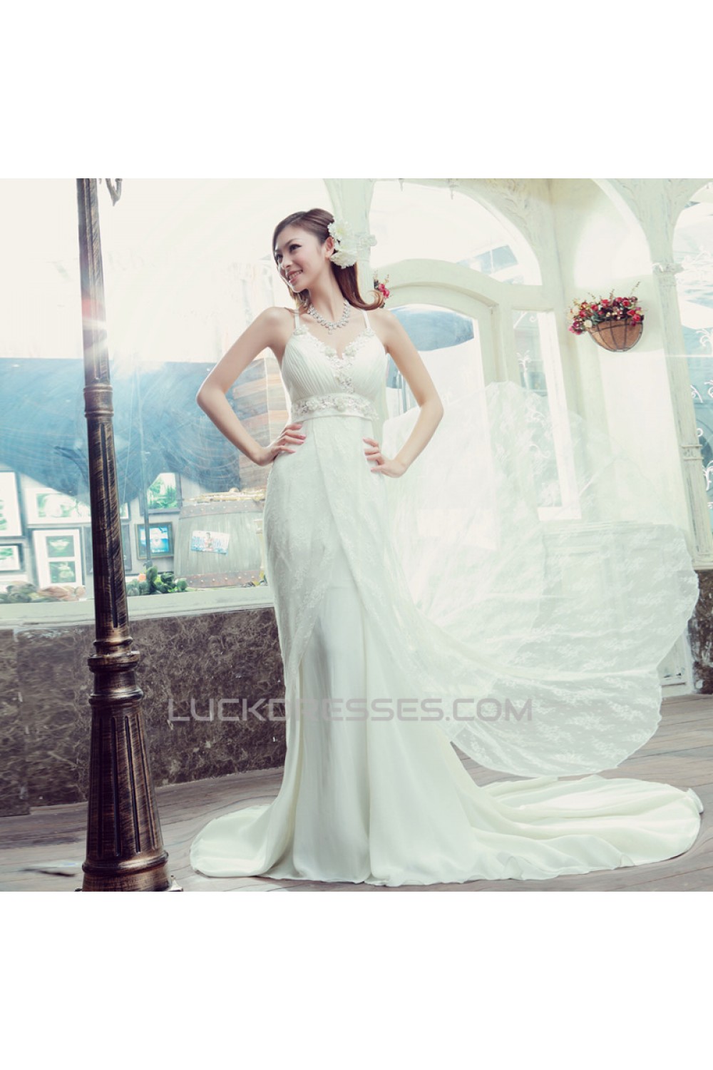 Sheath/Column Lace and Chiffon Bridal Wedding Dresses WD010513