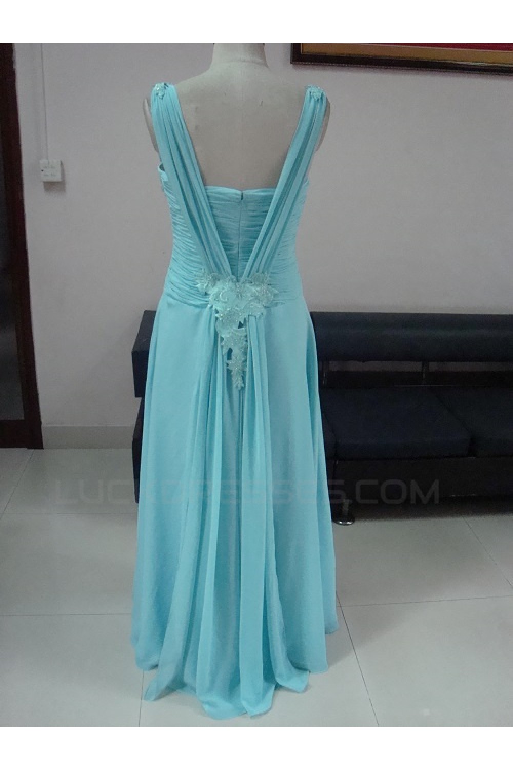 Sheath/Column Long Blue Chiffon Prom Evening Formal Party Dresses ED010732
