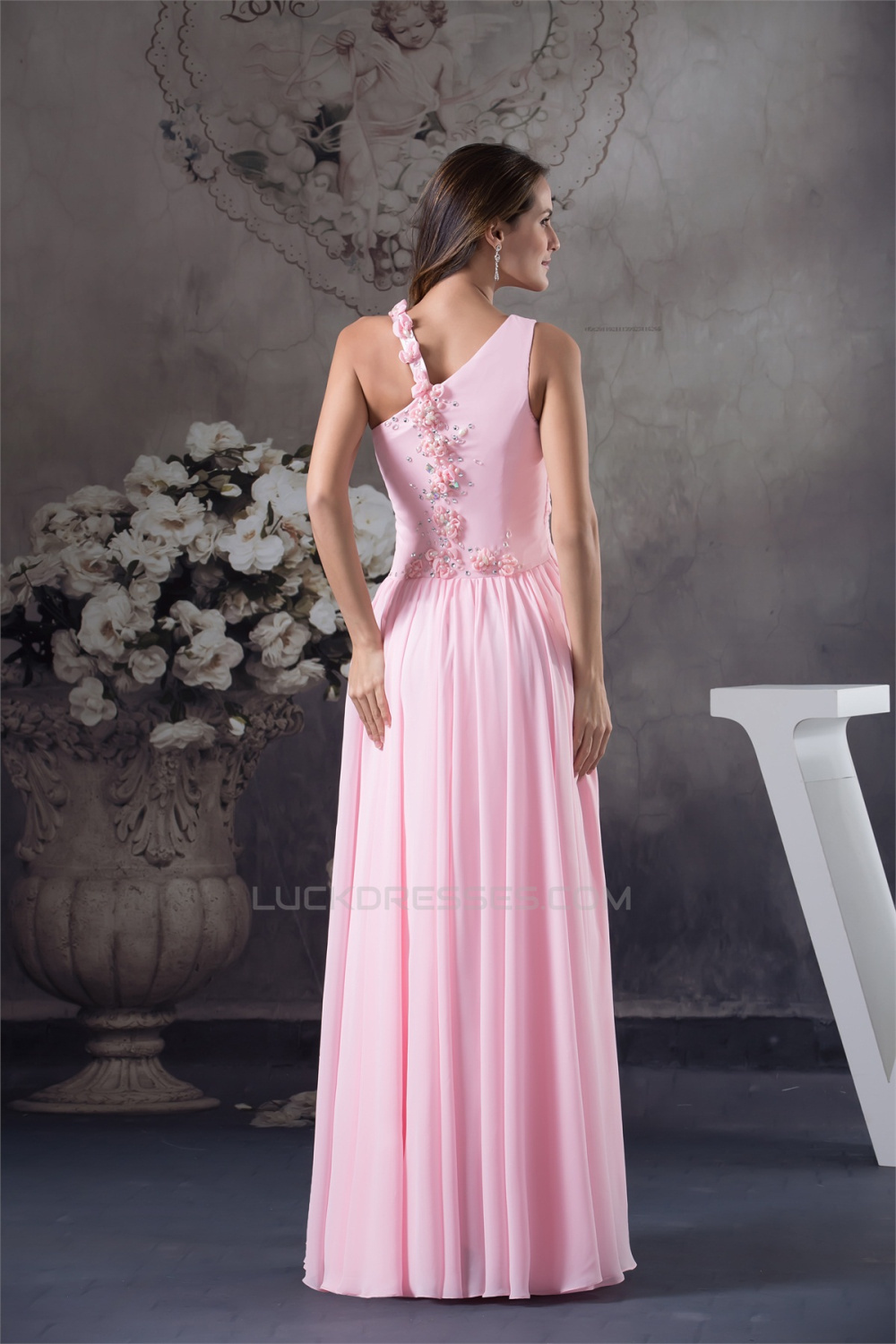 Sheath/Column Long Pink Chiffon Beaded Bridesmaid Dresses 02010021