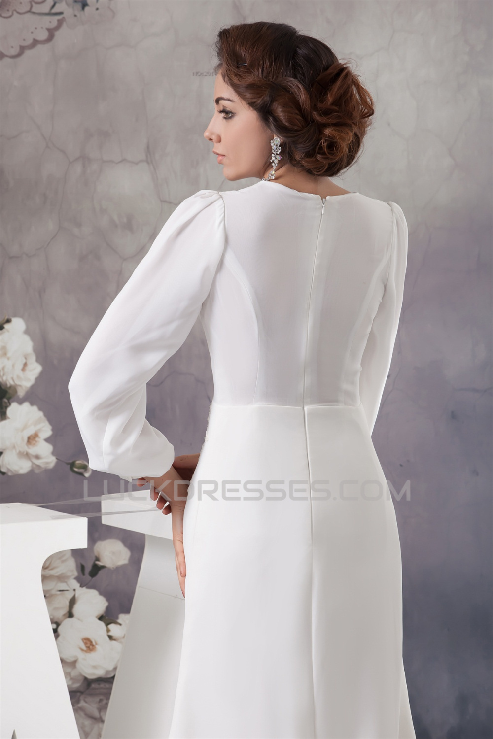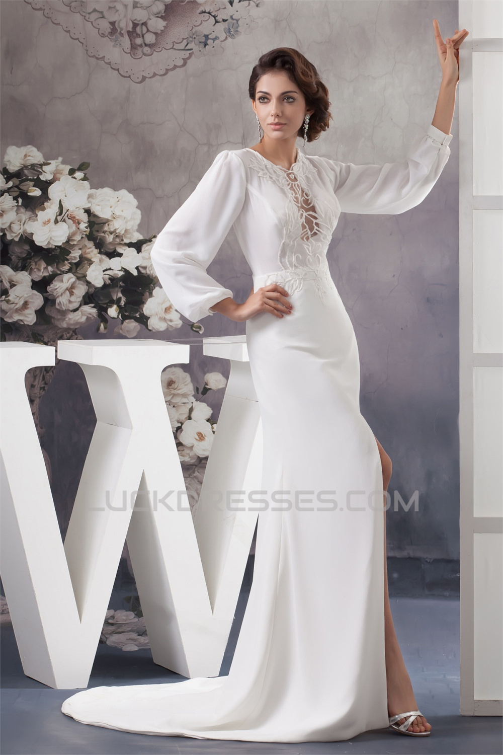 Sheath/Column Long Sleeve Sweep Train Best Wedding Dresses 2030726