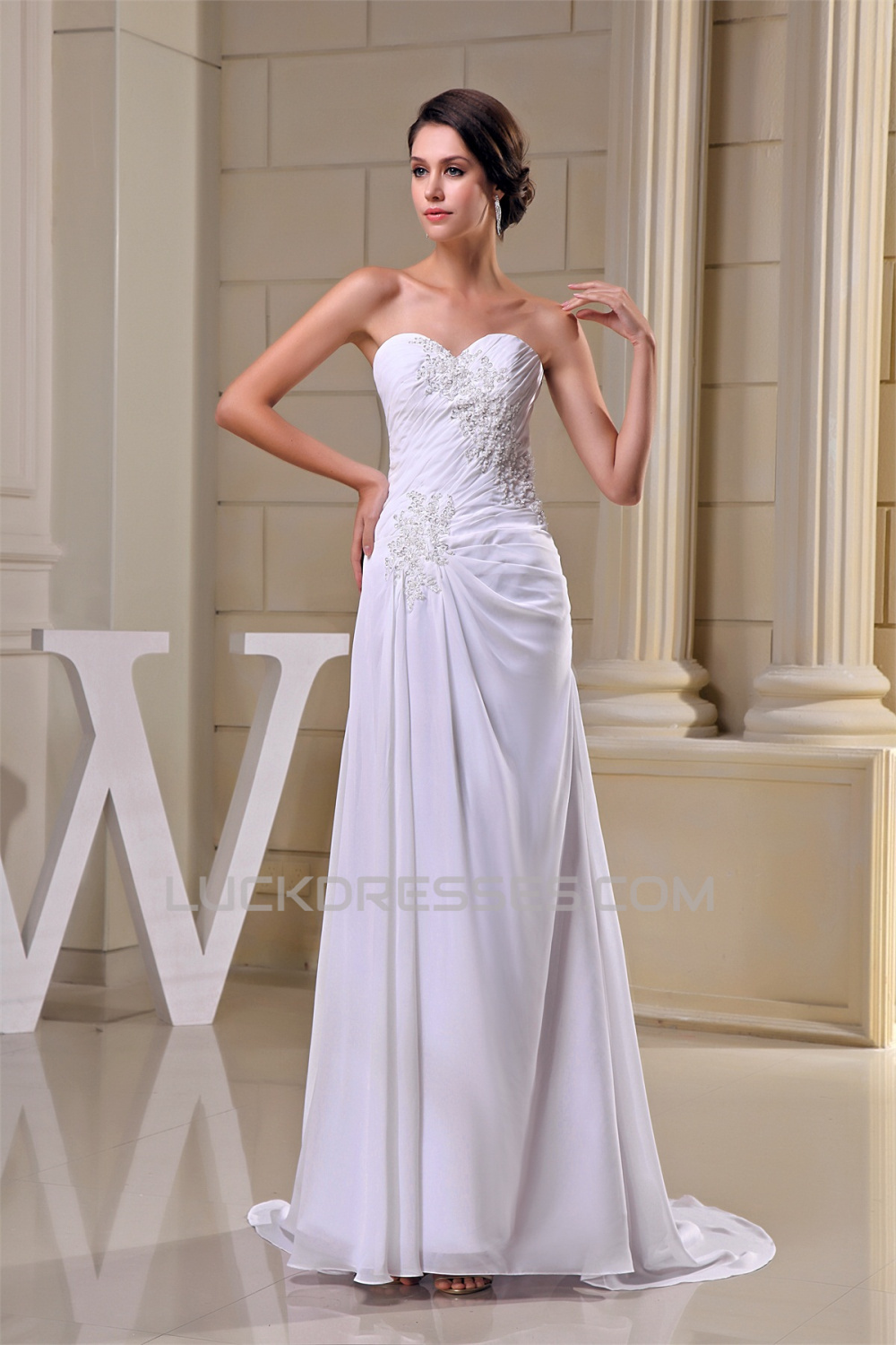 Sheath/Column New Arrival Chiffon Lace Beaded Wedding Dresses 2030343