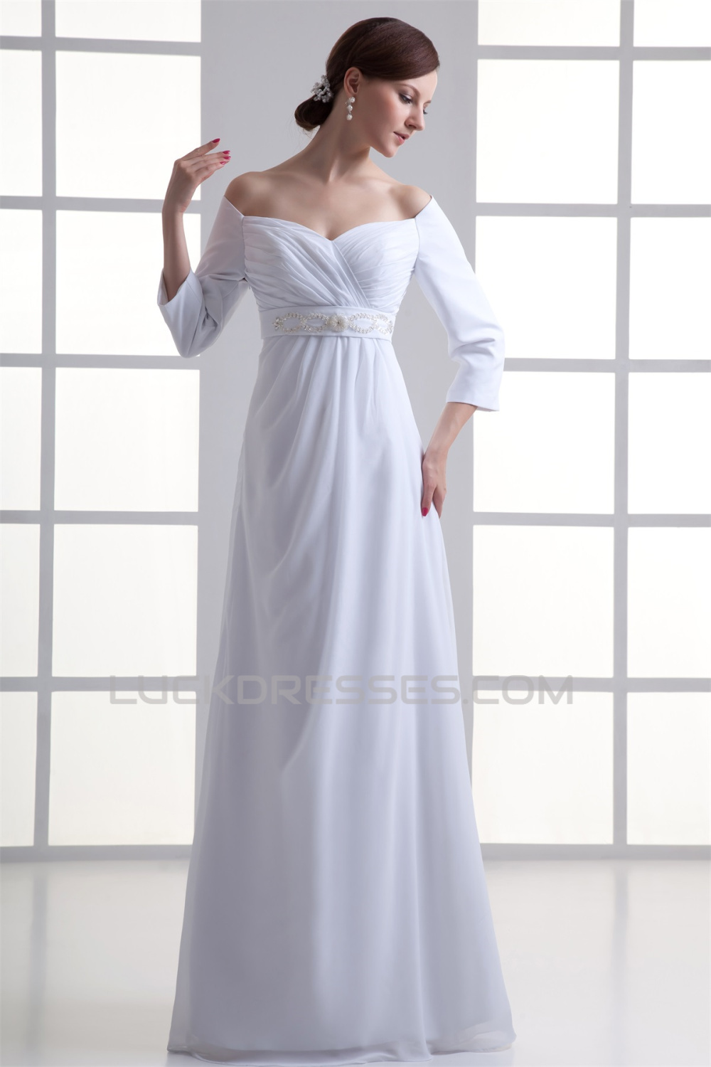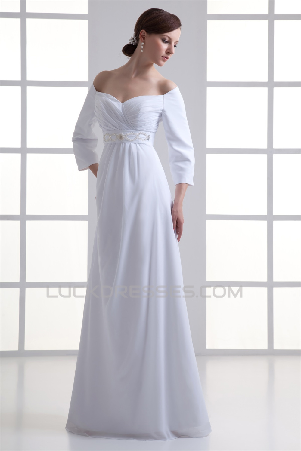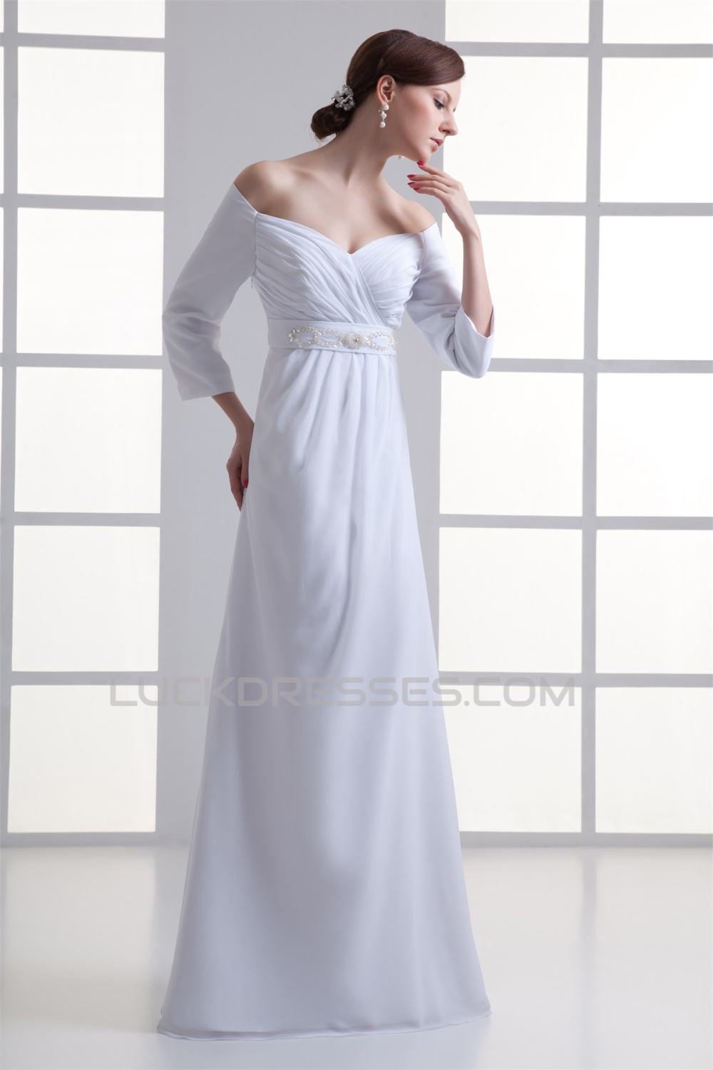 -50% Sheath/Column Off-the-Shoulder 3/4 Length Sleeve Wedding Dresses 2031309