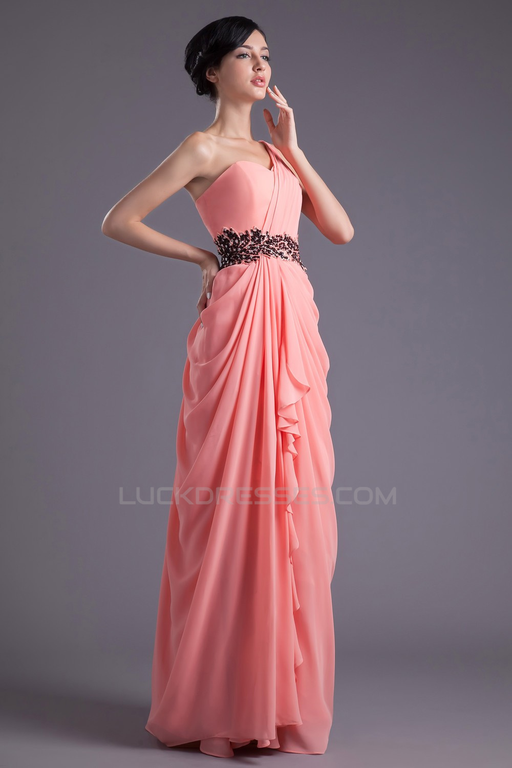 Sheath/Column One-Shoulder Beaded Long Chiffon Prom Evening Formal Dresses ED011390