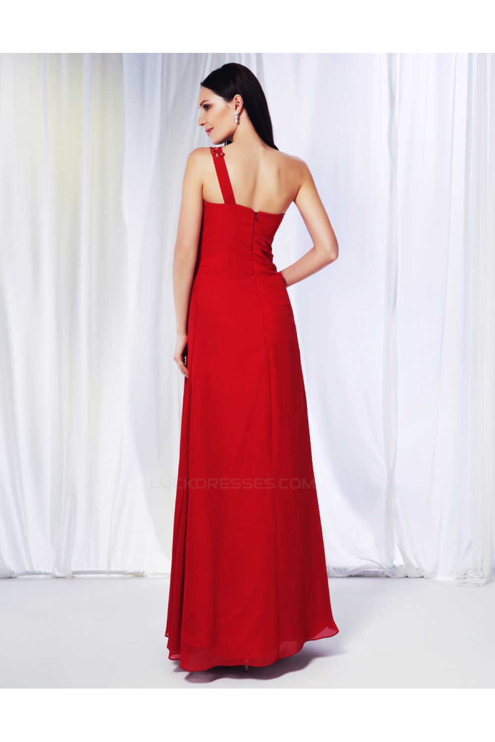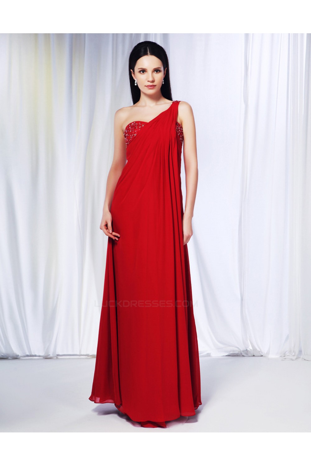 Sheath/Column One-Shoulder Beaded Long Red Chiffon Prom Evening Formal Dresses ED010966