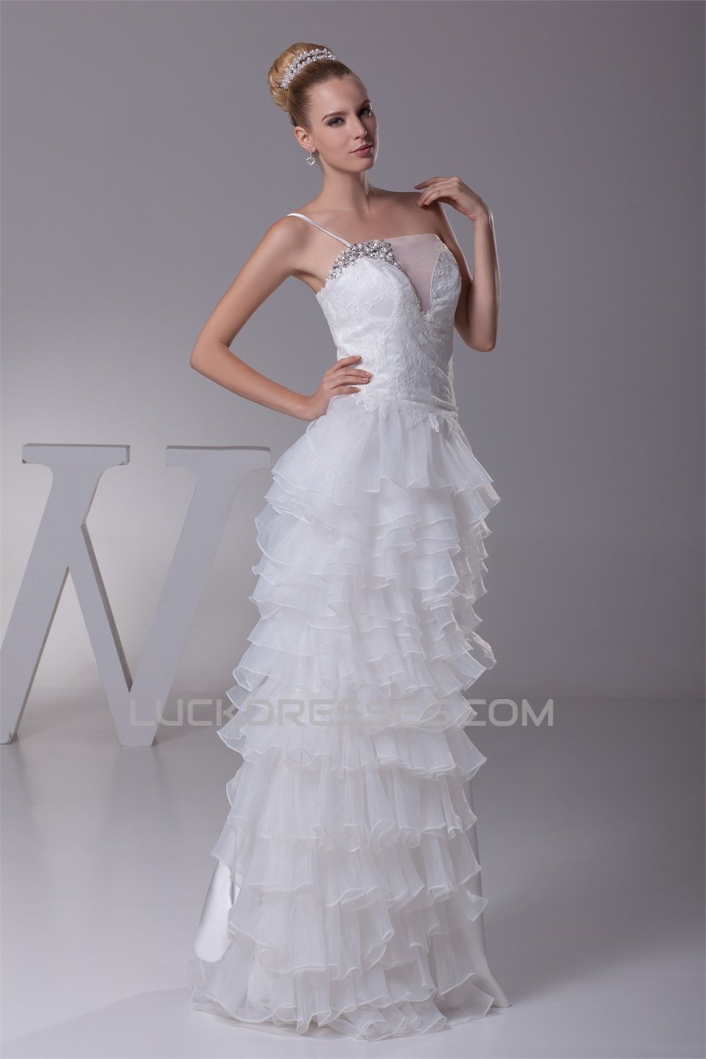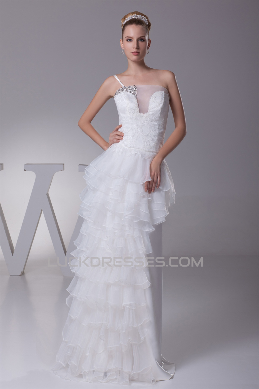 Sheath/Column One-Shoulder Lace Organza Wedding Dresses 2030241