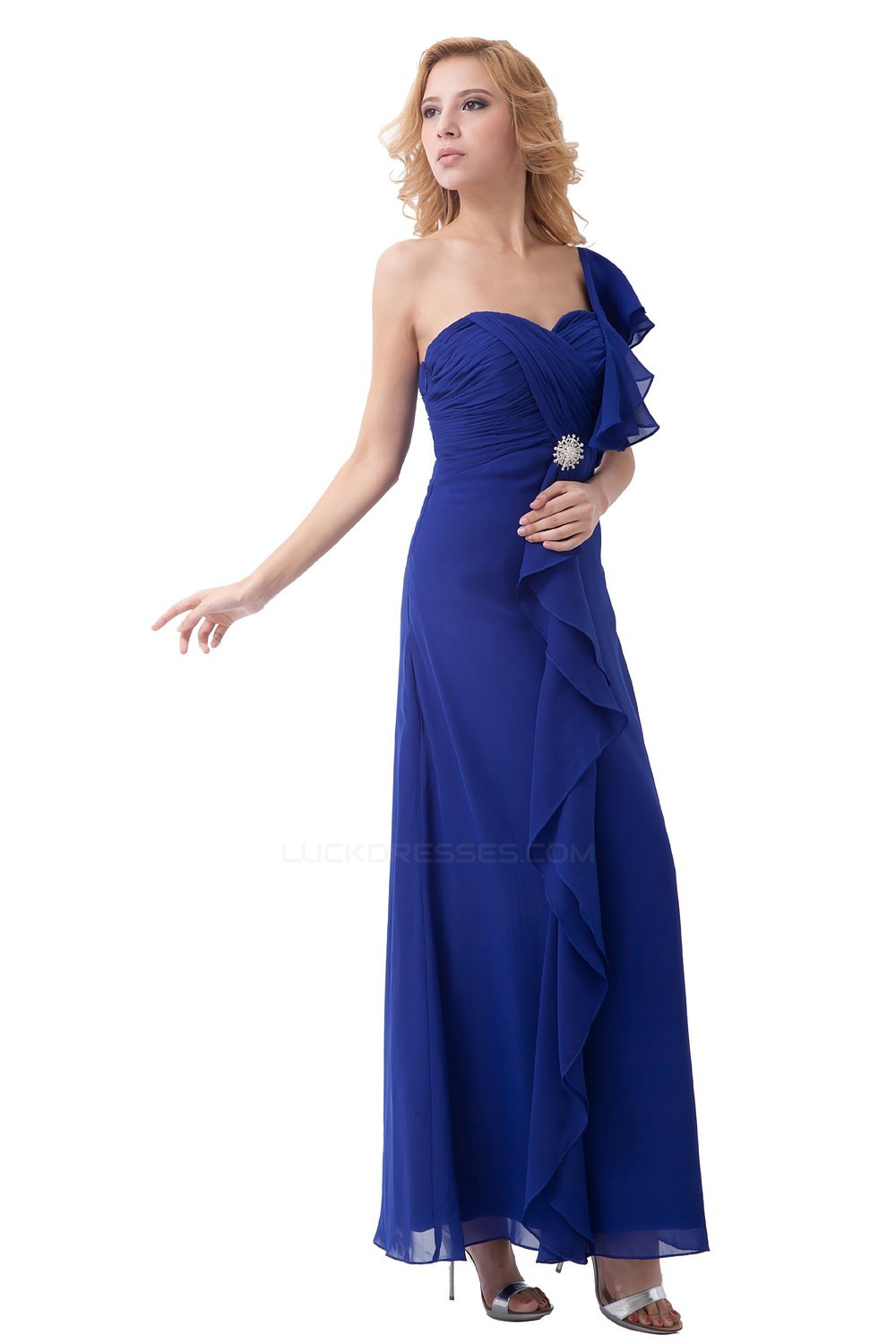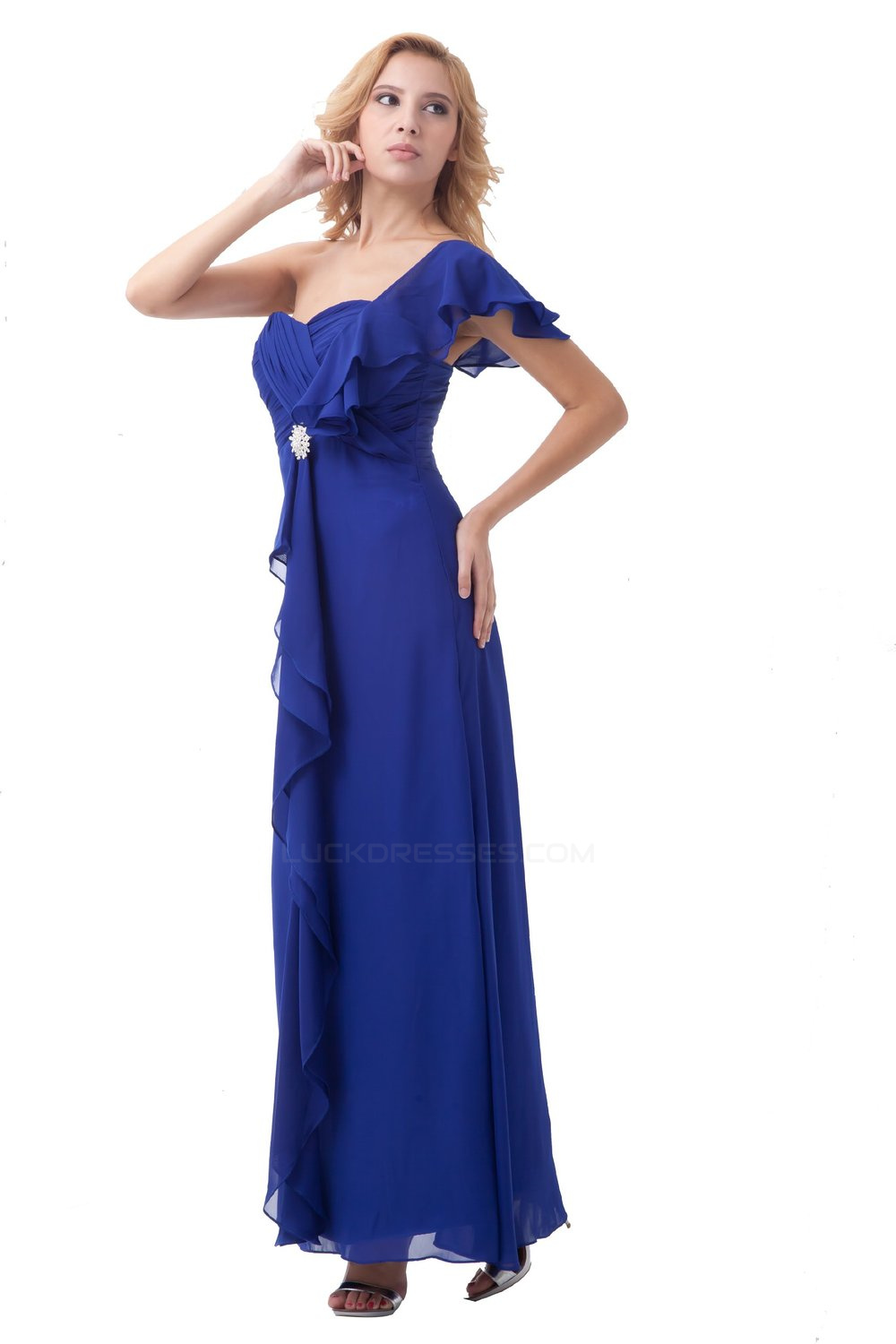 -55% Sheath/Column One-Shoulder Royal Blue Long Chiffon Bridesmaid Dresses/Wedding Party Dresses BD010179