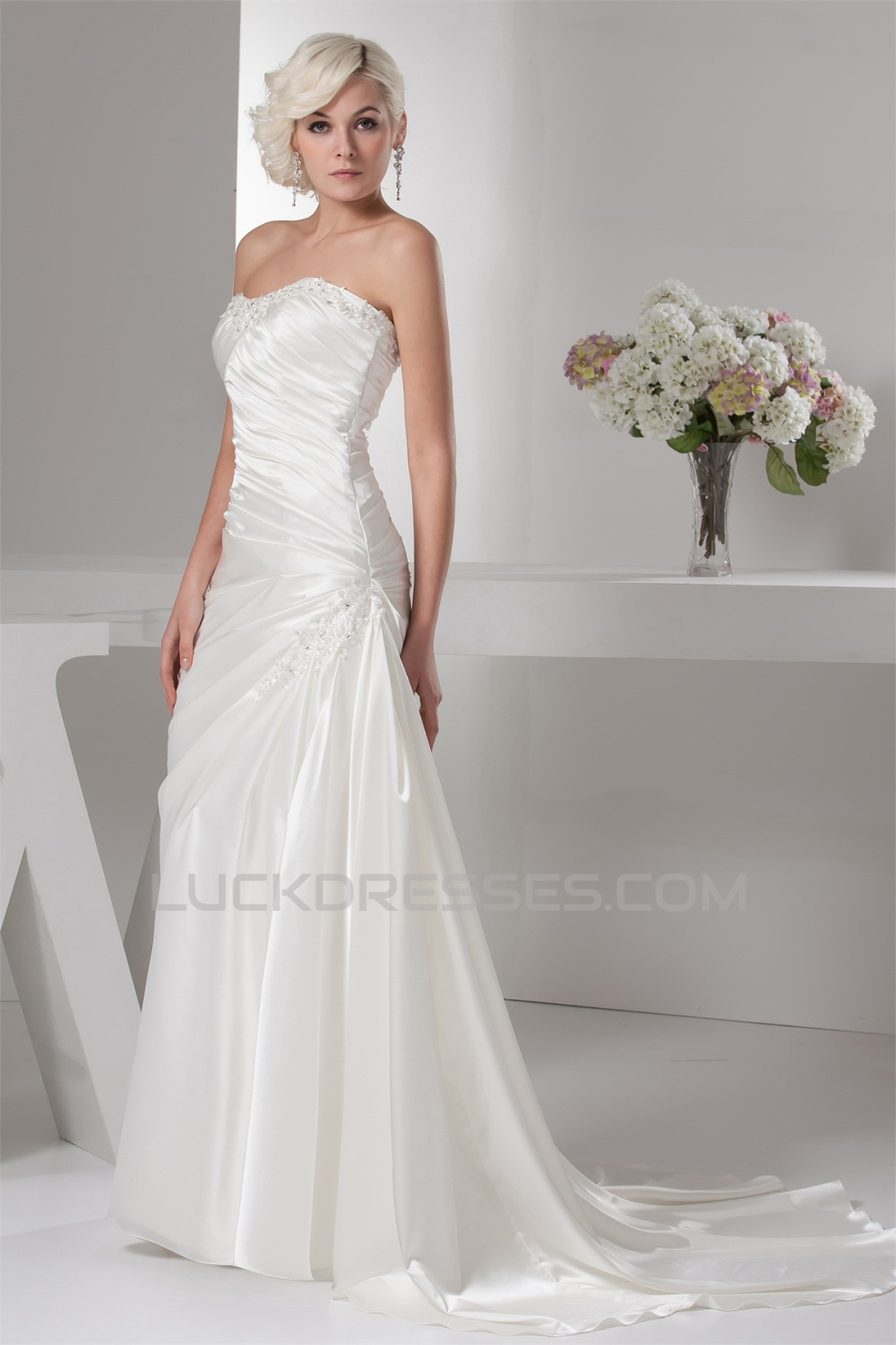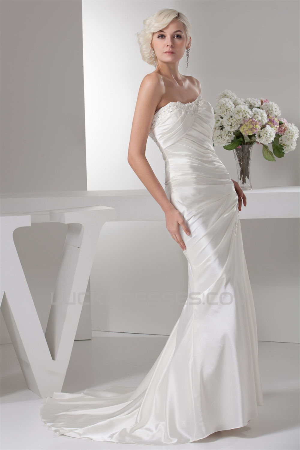 Sheath/Column Satin Lace Fine Netting Soft Wedding Dresses 2030850
