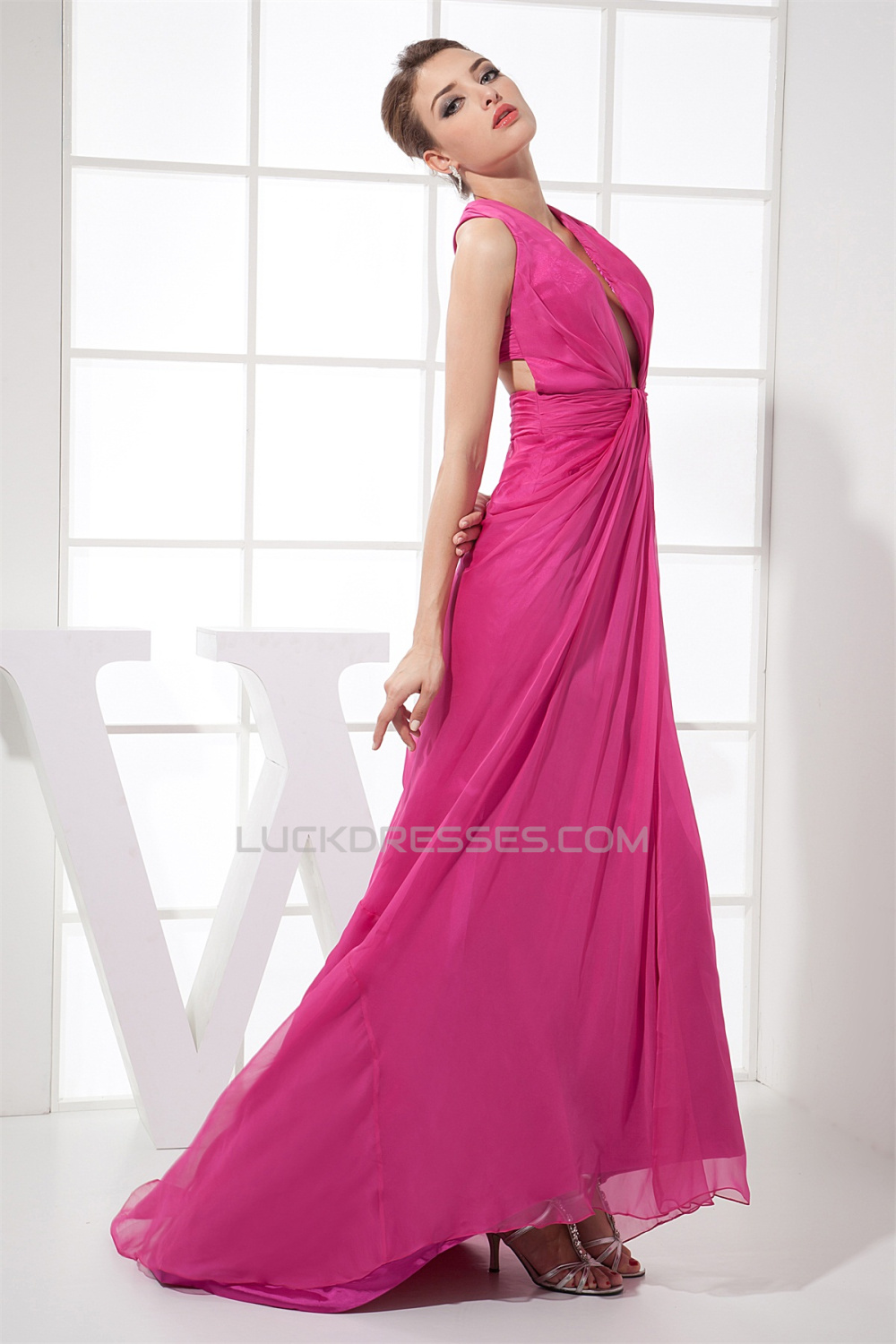 Sheath/Column Sleeveless Pleats Chiffon Silk like Satin Mother of the Bride Dresses 2040075