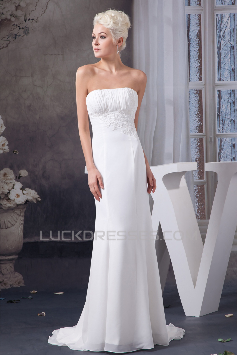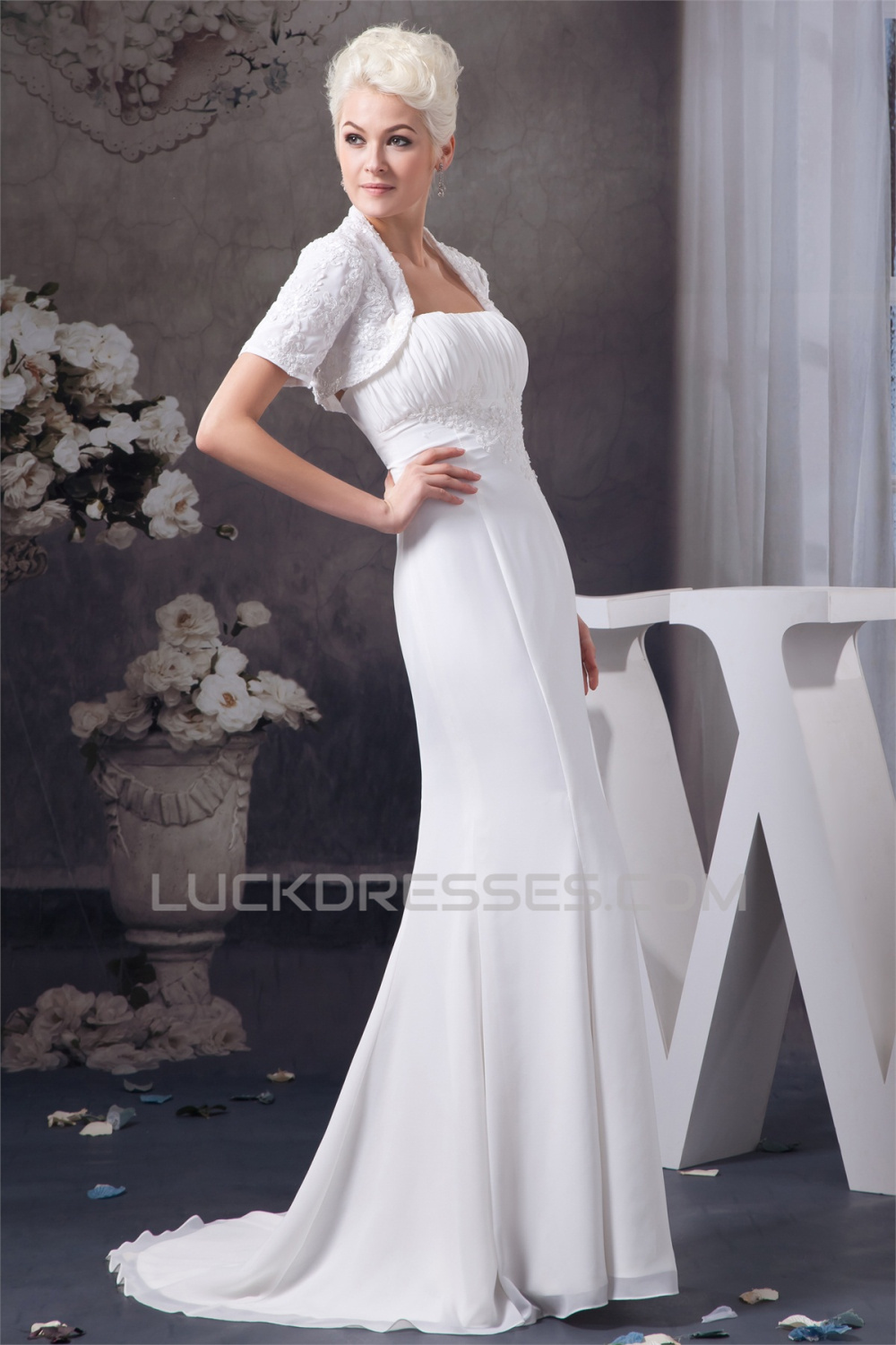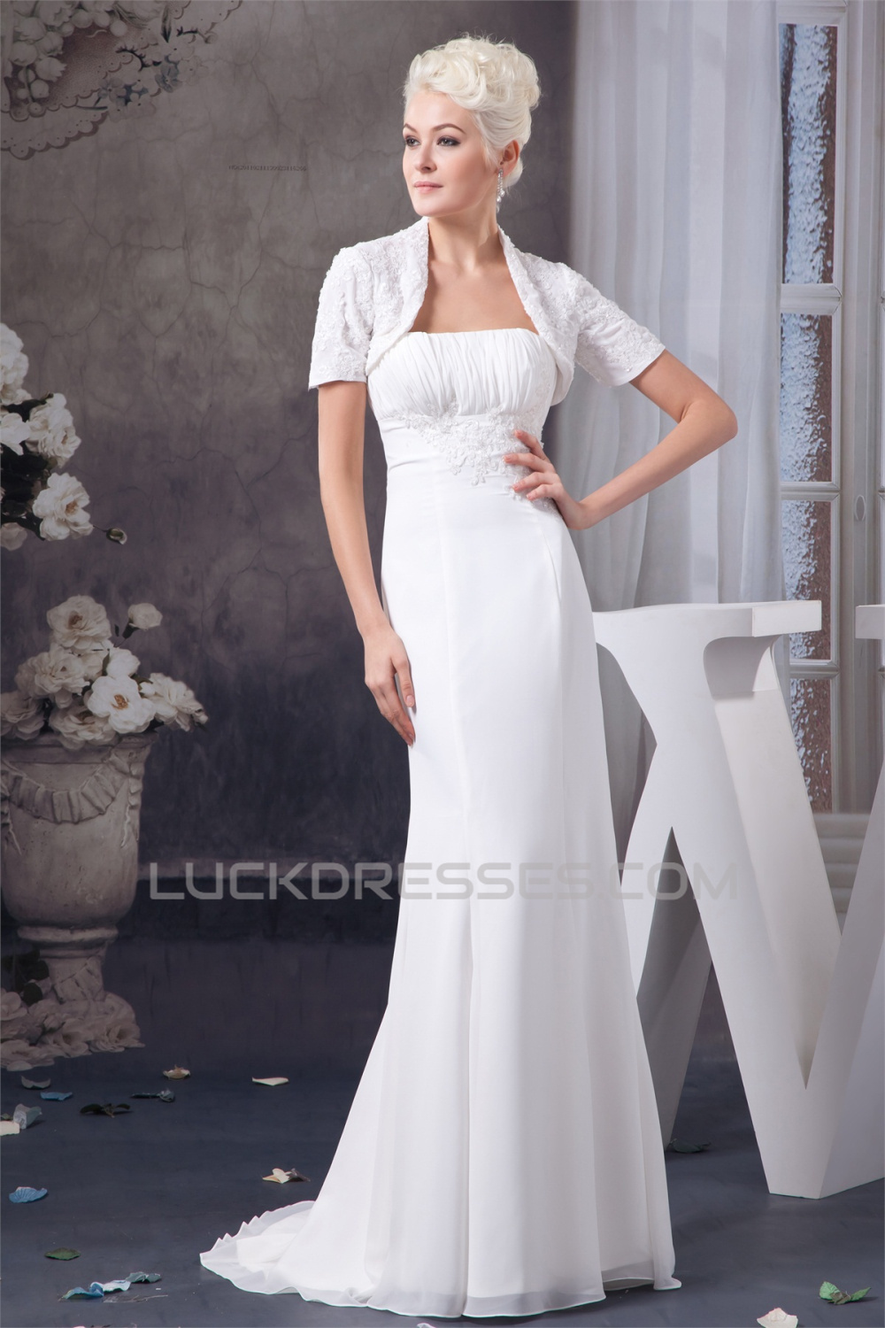 Sheath/Column Sleeveless Strapless Chiffon Wedding Dresses with A Short Sleeve Jacket 2030901
