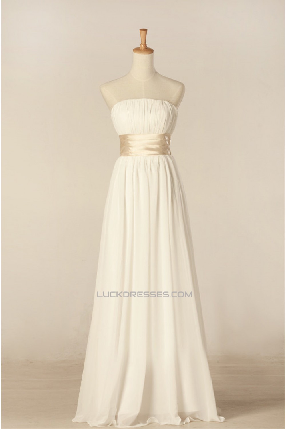 Sheath/Column Strapless Bowknot Chiffon Bridal Gown Wedding Dress WD010445