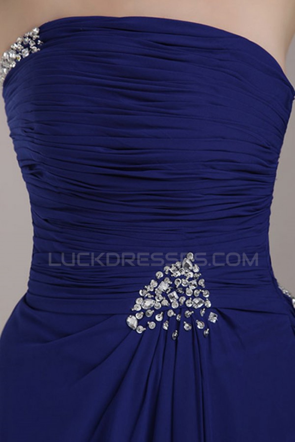 Sheath/Column Strapless Long Blue Chiffon Prom Evening Formal Party Dresses ED010070