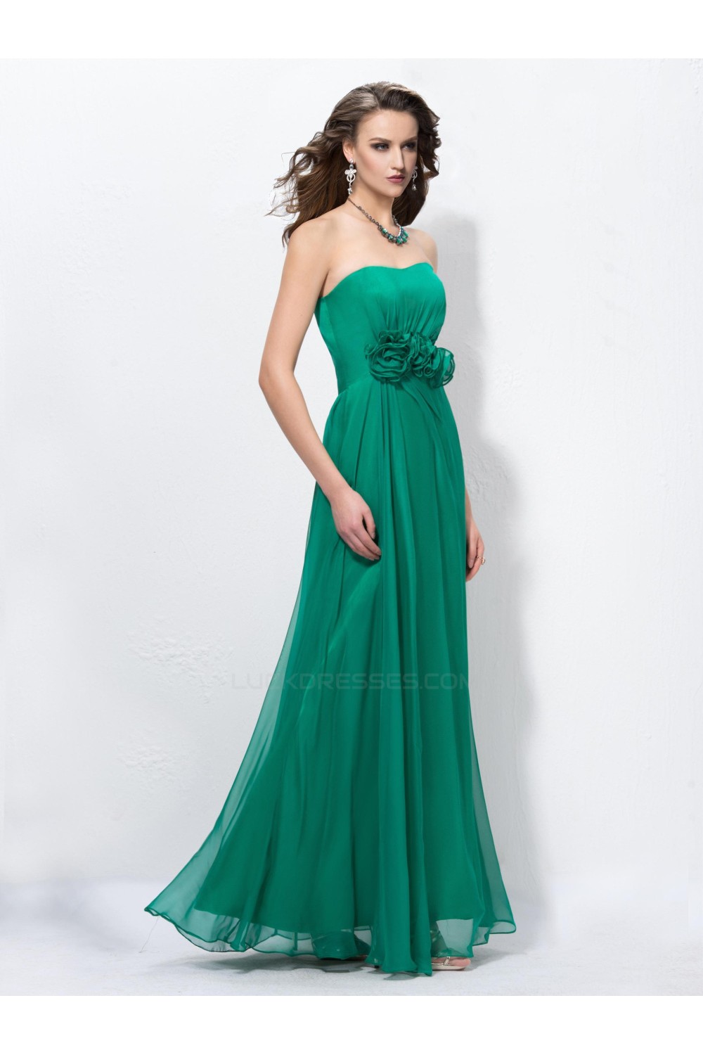 Sheath/Column Strapless Long Green Chiffon Prom Evening Formal Party Dresses ED010568
