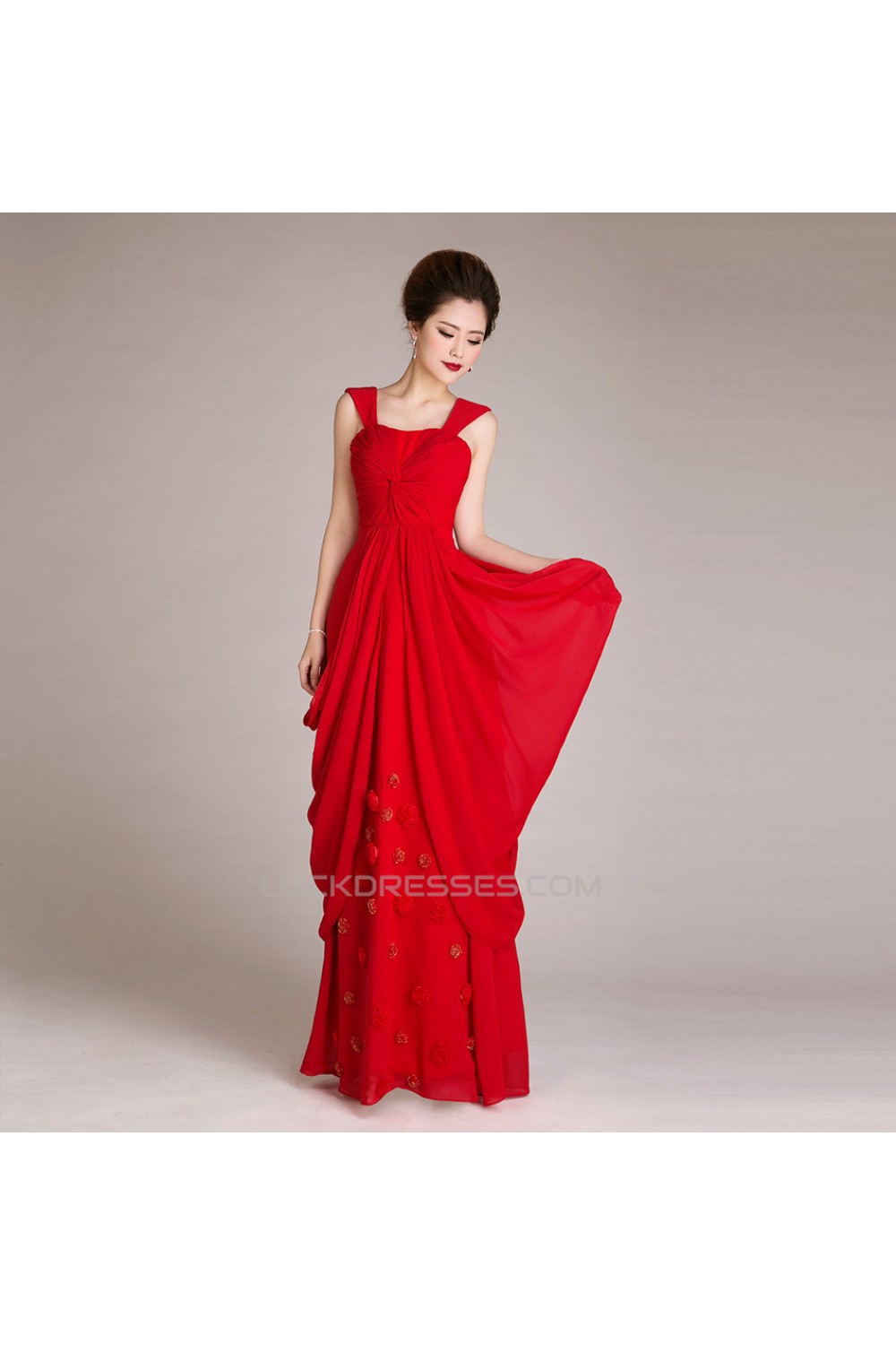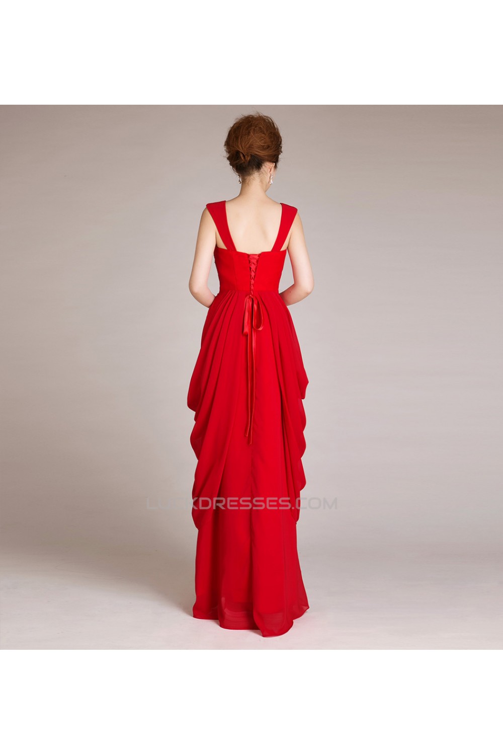 Sheath/Column Straps Sleeveless Long Red Chiffon Prom Evening Formal Dresses ED011257