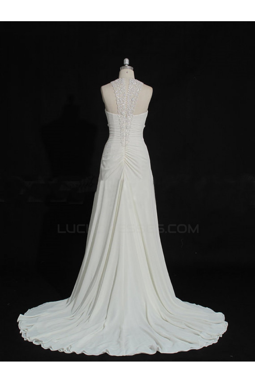 Sheath/Column Sweep Train Chiffon and Lace Bridal Wedding Dresses WD010211