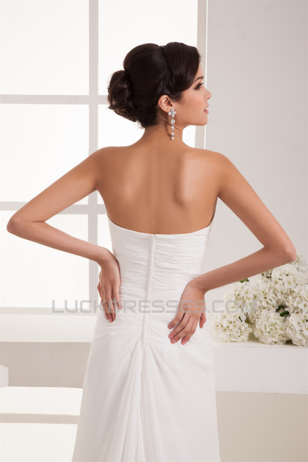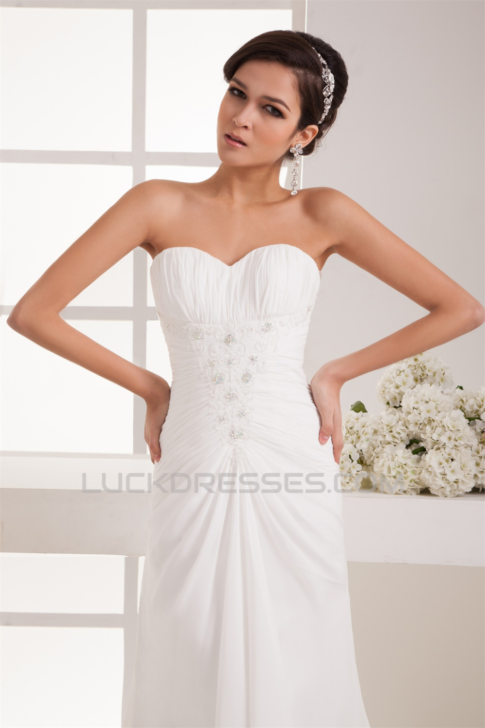 Sheath/Column Sweetheart Chiffon Sweep Train Wedding Dresses 2030913
