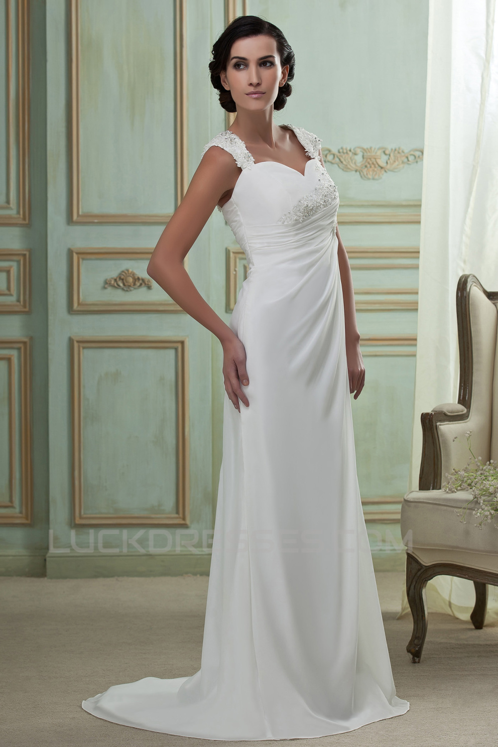 Sheath/Column Sweetheart Sweep Train Lace Chiffon Wedding Dresses 2031465