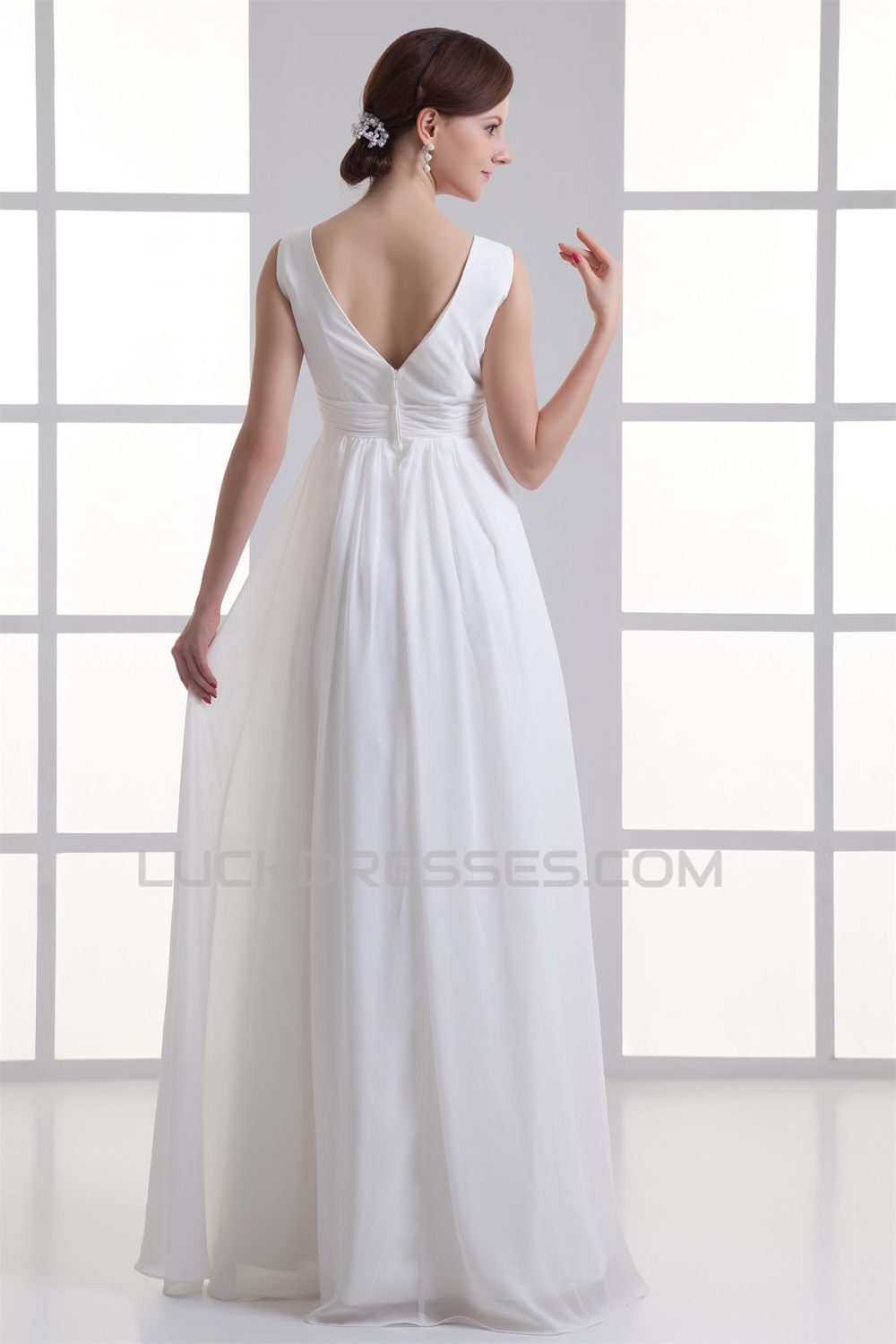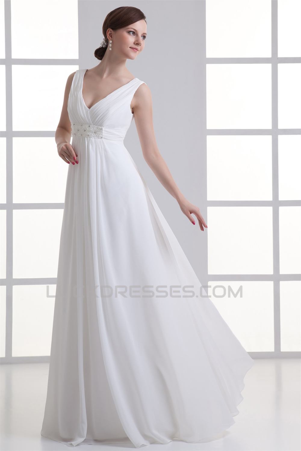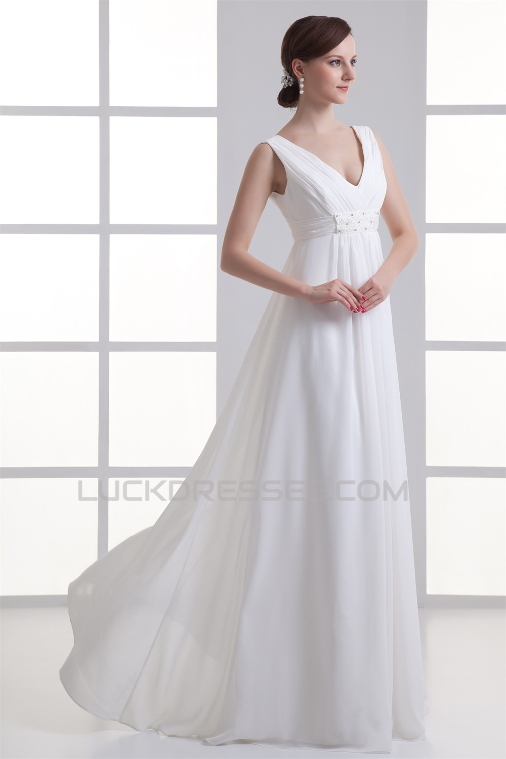 Sheath/Column V-Neck Chiffon Beaded Wedding Dresses Maternity Wedding Dresses 2031342