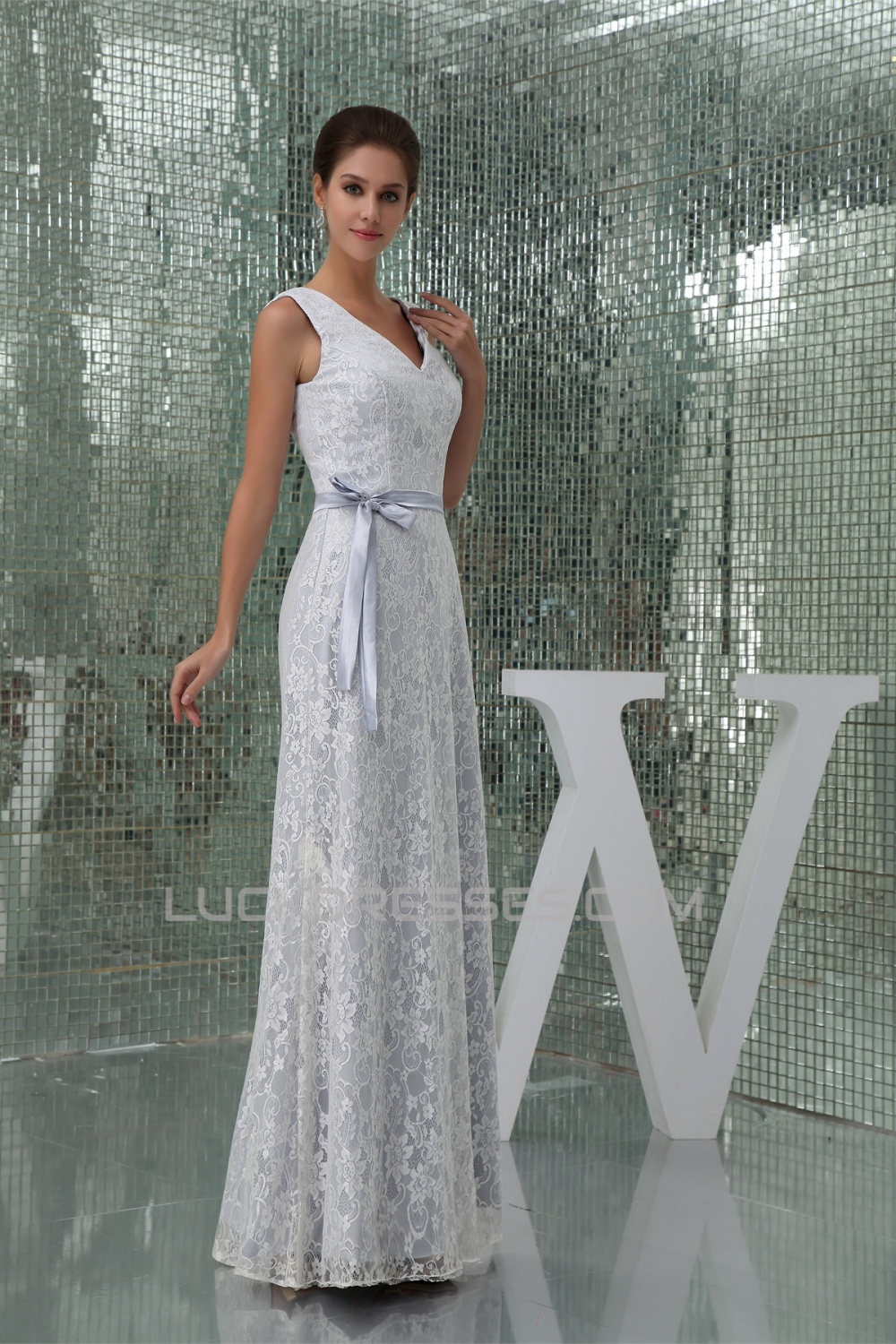 Sheath/Column V-Neck Lace Sleeveless Wedding Dresses 2030091