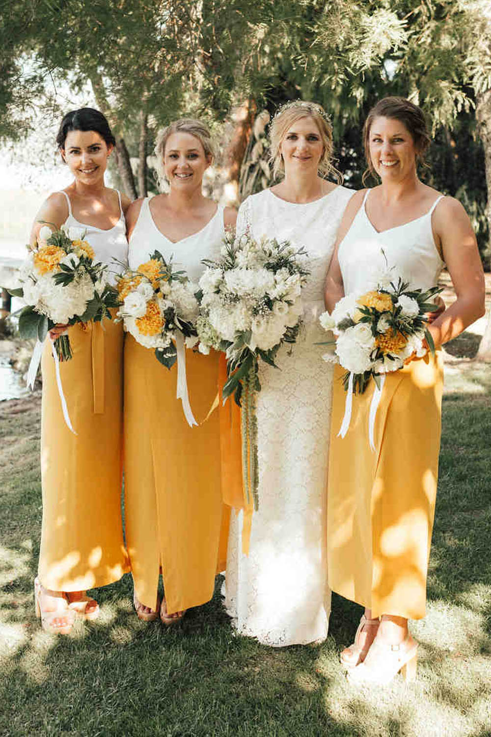 Sheath/Column Yellow White Long Bridesmaid Dresses 902038