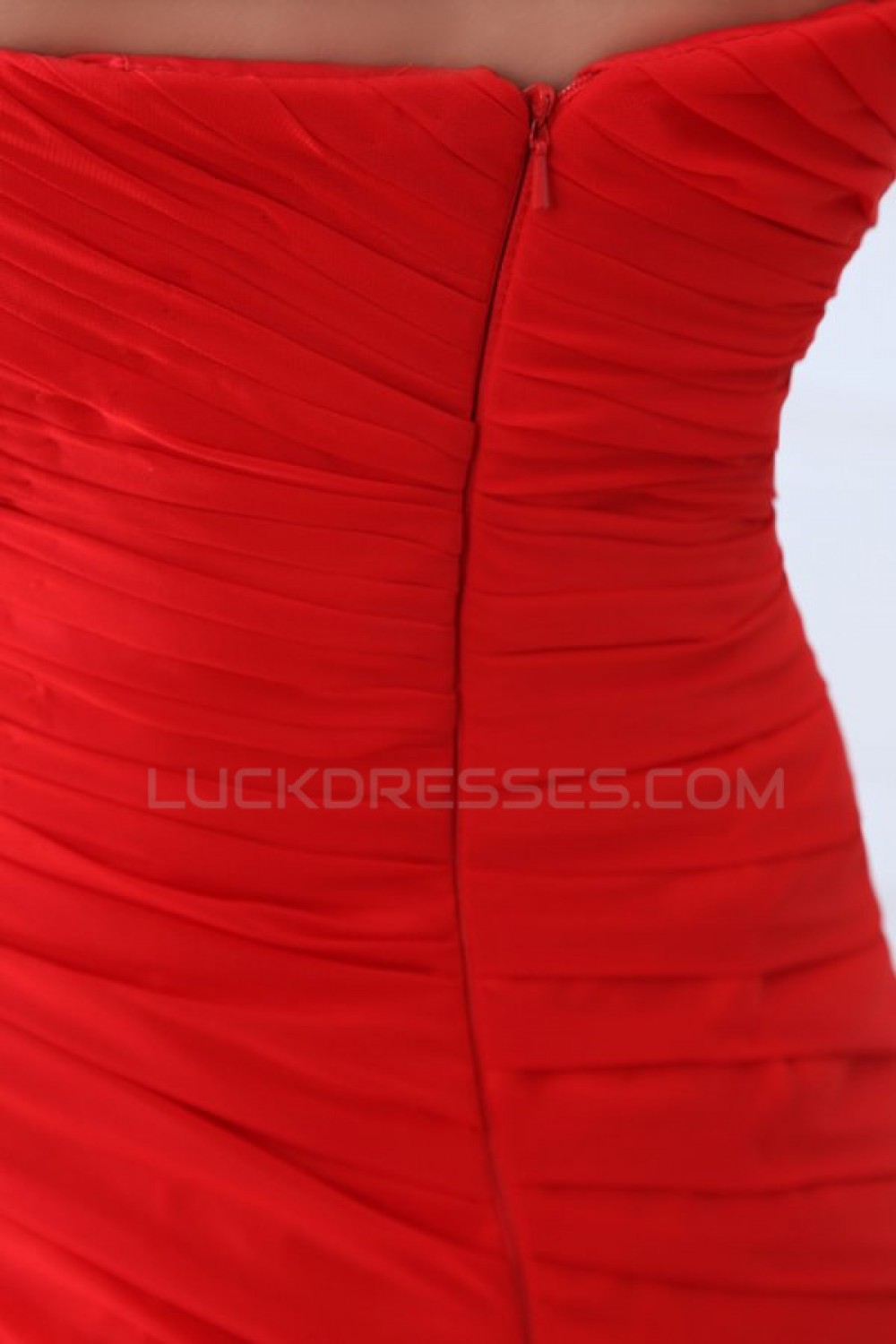 Sheath One-Shoulder Beaded Long Red Chiffon Prom Evening Formal Party Dresses ED010058