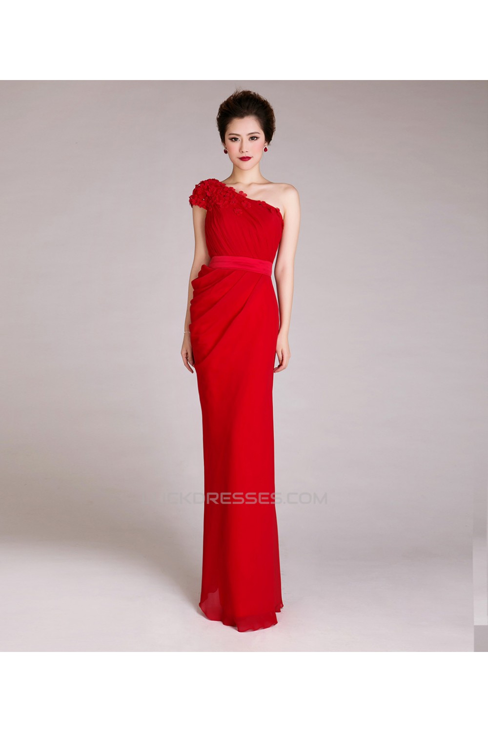 Sheath One-Shoulder Long Red Chiffon Prom Evening Formal Dresses ED011229