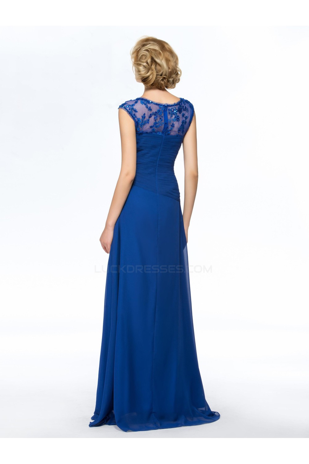 Sheath Straps Sleeveless Long Blue Chiffon Mother of the Bride Dresses M010063
