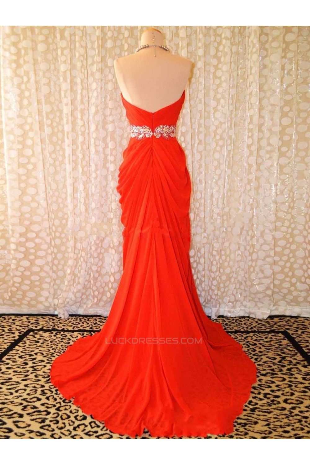 Sheath Sweetheart Beaded Long Chiffon Prom Evening Formal Dresses ED011411