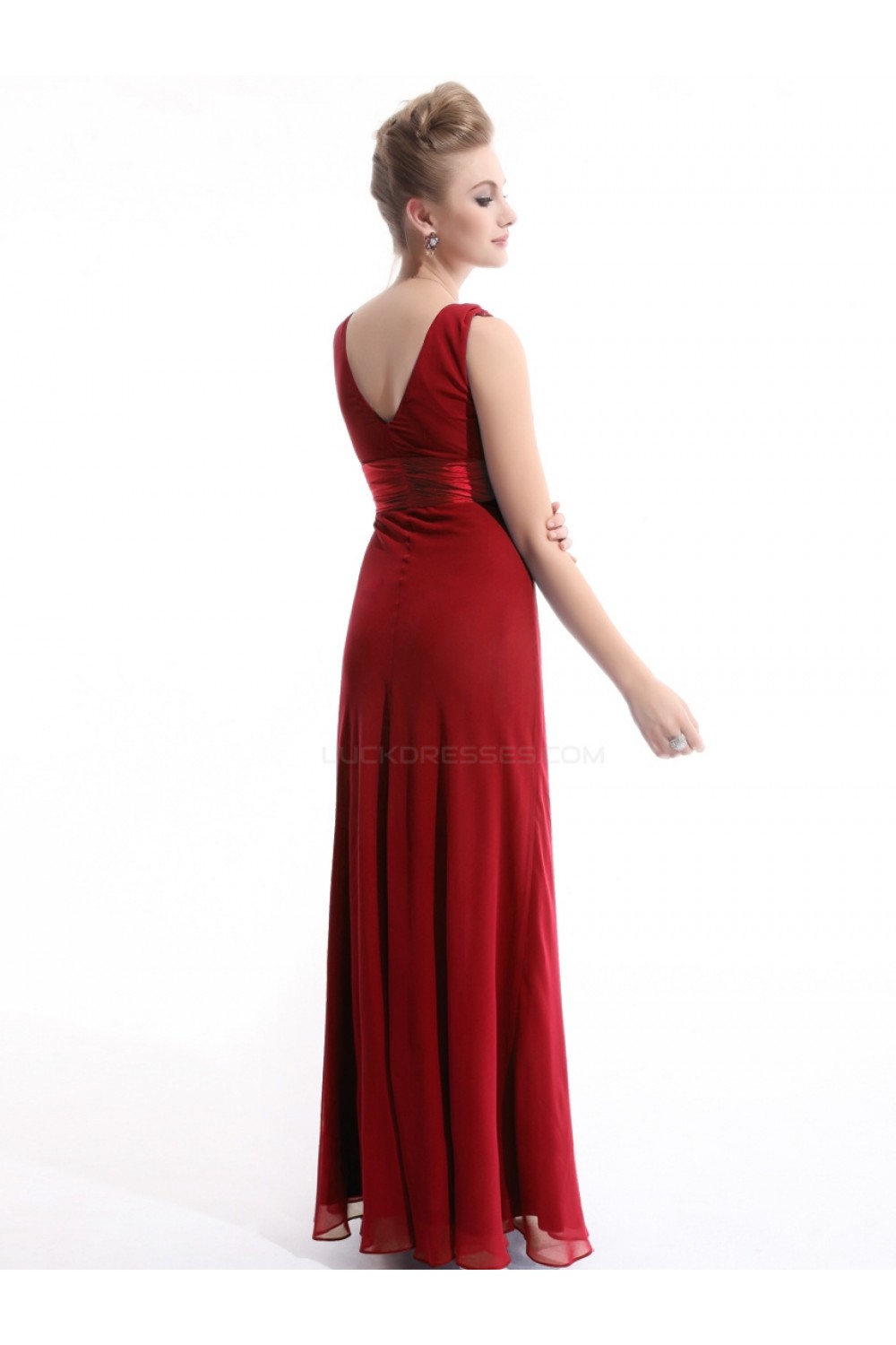 Sheath V-Neck Long Red Chiffon Bridesmaid Dresses/Evening Dresses BD010267