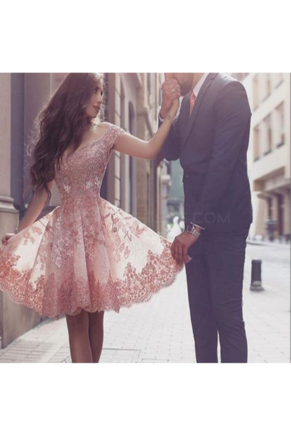 Short Lace Off-the-Shoulder Prom Homecoming Cocktail Graduation Dresses 3021508