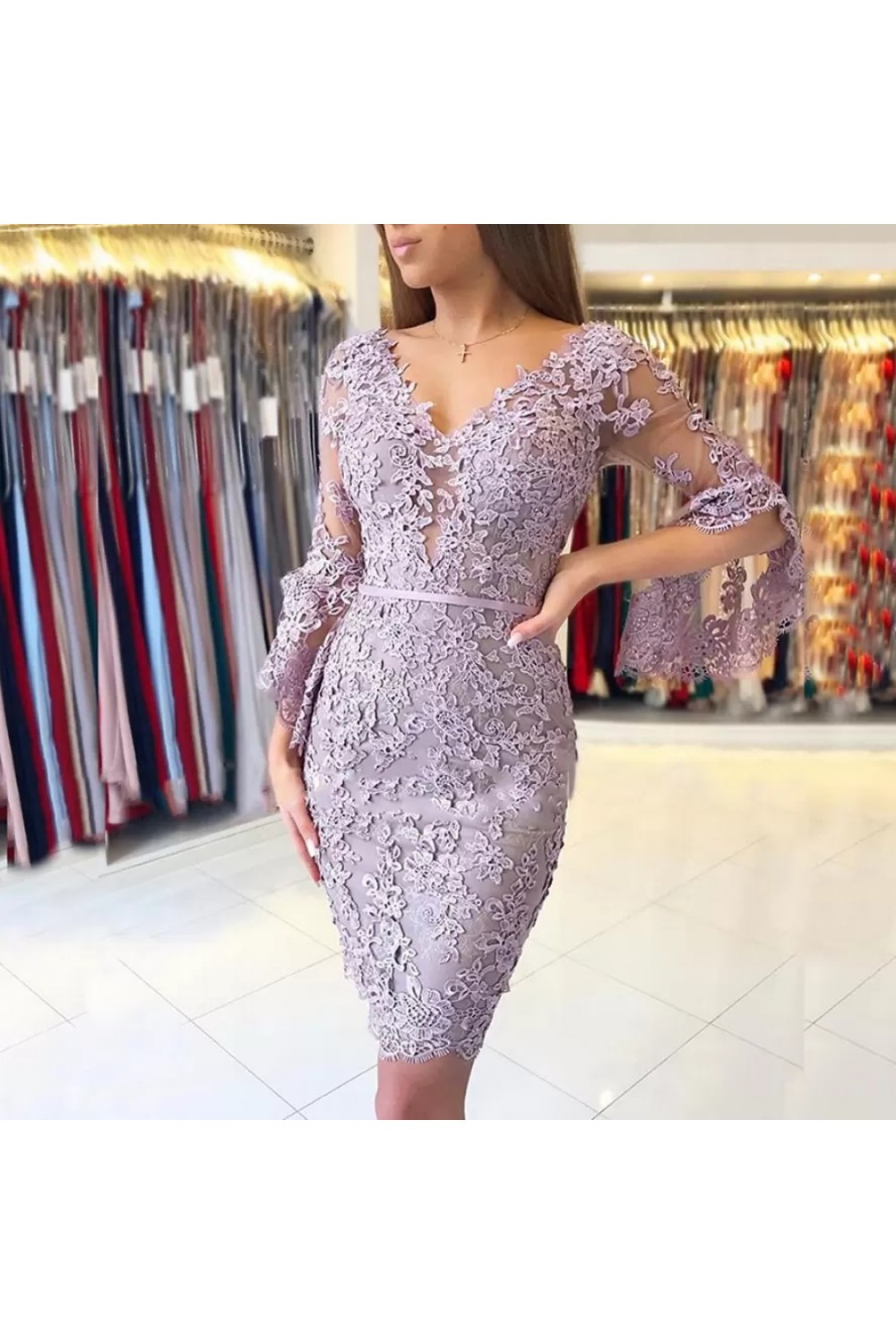 Short Lace V Neck Mother of the Bride Dresses 702116
