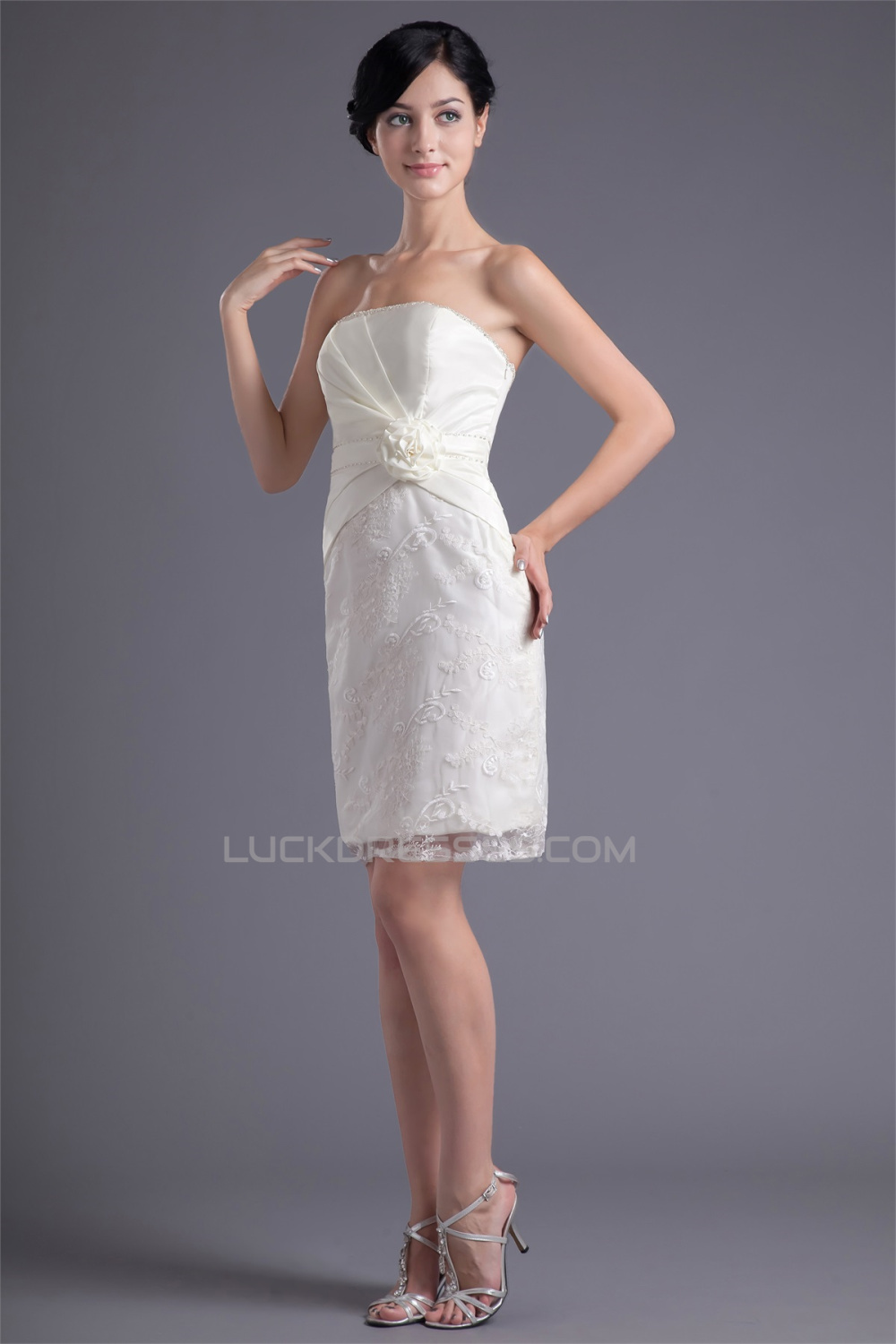 -60% Short/Mini Handmade Flowers Satin Lace Prom/Formal Evening Dresses 02021505