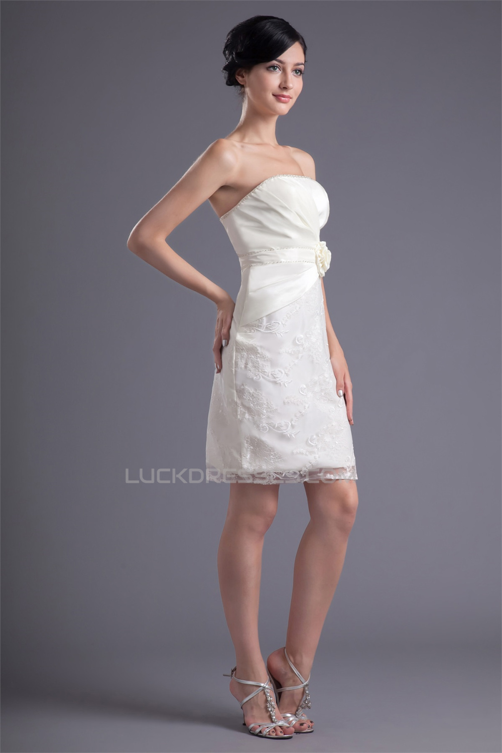 Short/Mini Handmade Flowers Satin Lace Prom/Formal Evening Dresses 02021505
