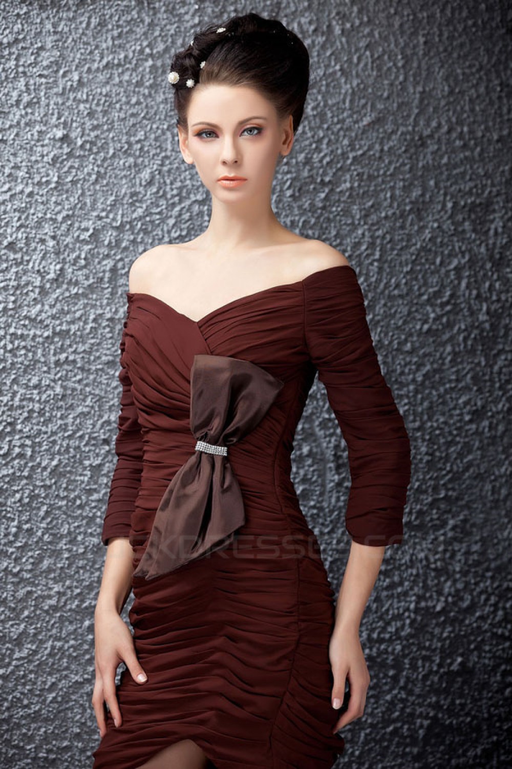 Short/Mini Pleated 3/4 Sleeve V-Neck Mother of the Bride Dresses 2040219