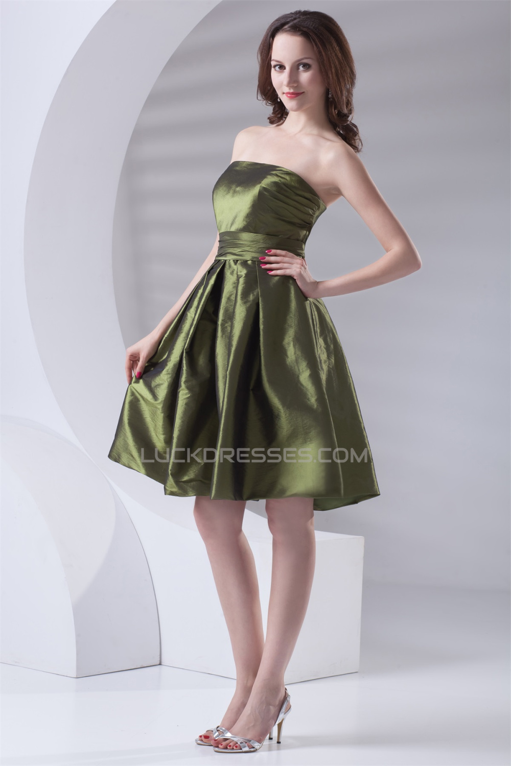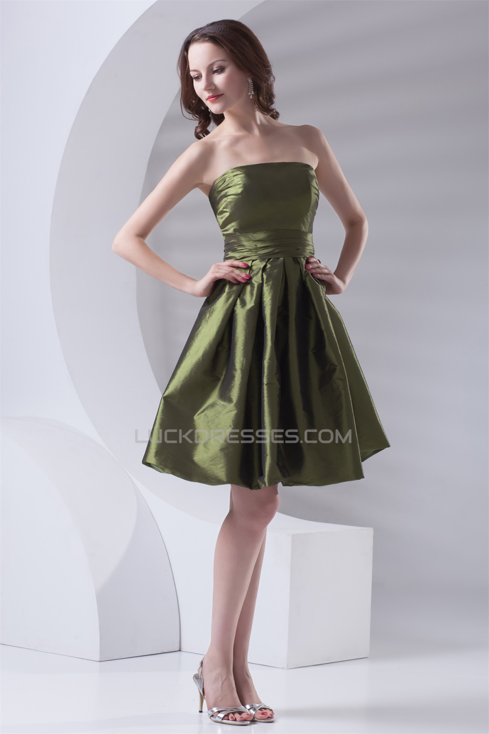 Short/Mini Pleats Strapless Taffeta A-Line Bridesmaid Dresses 02010519