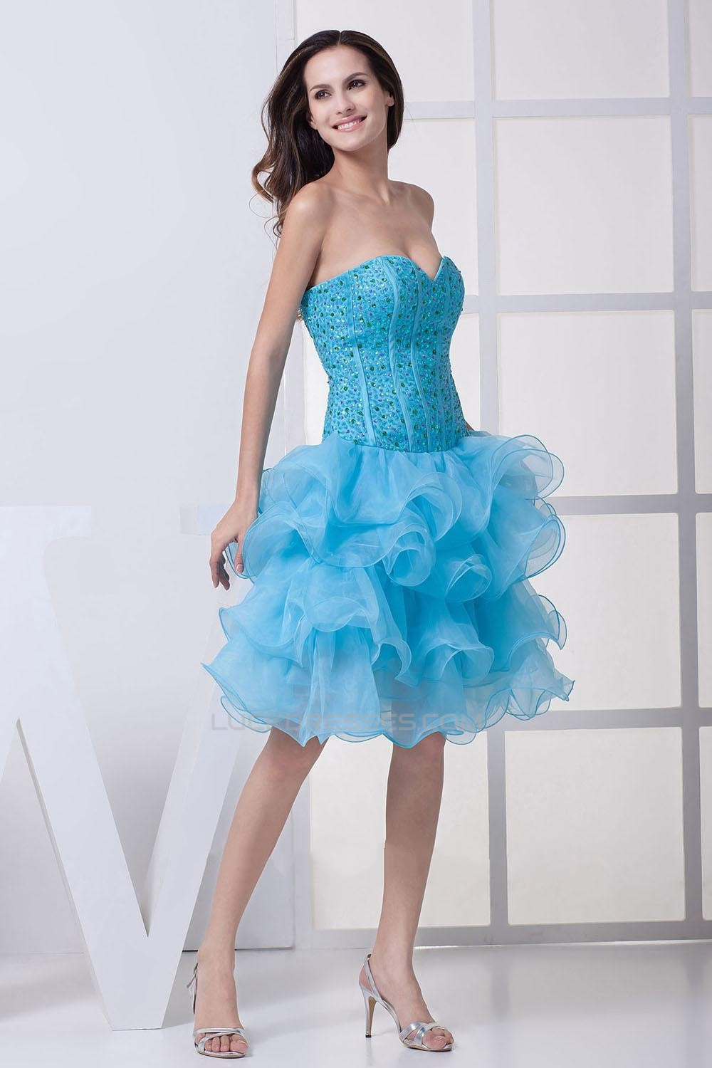 Short/Mini Sweetheart Beaded Blue Cocktail Homecoming Dresses ED010792