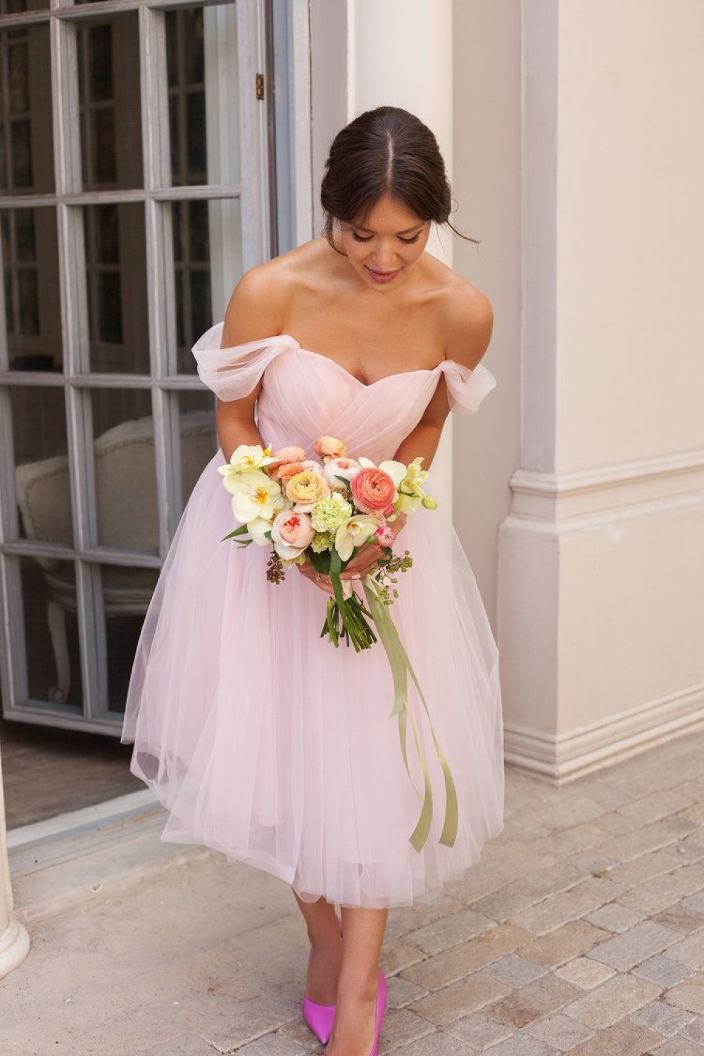 Short Pink Tulle Off the Shoulder Bridesmaid Dresses 902116