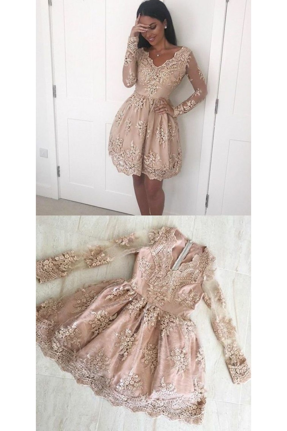 Short Prom Dress Long Sleeves Lace Homecoming Dresses Graduation Party Dresses 701070