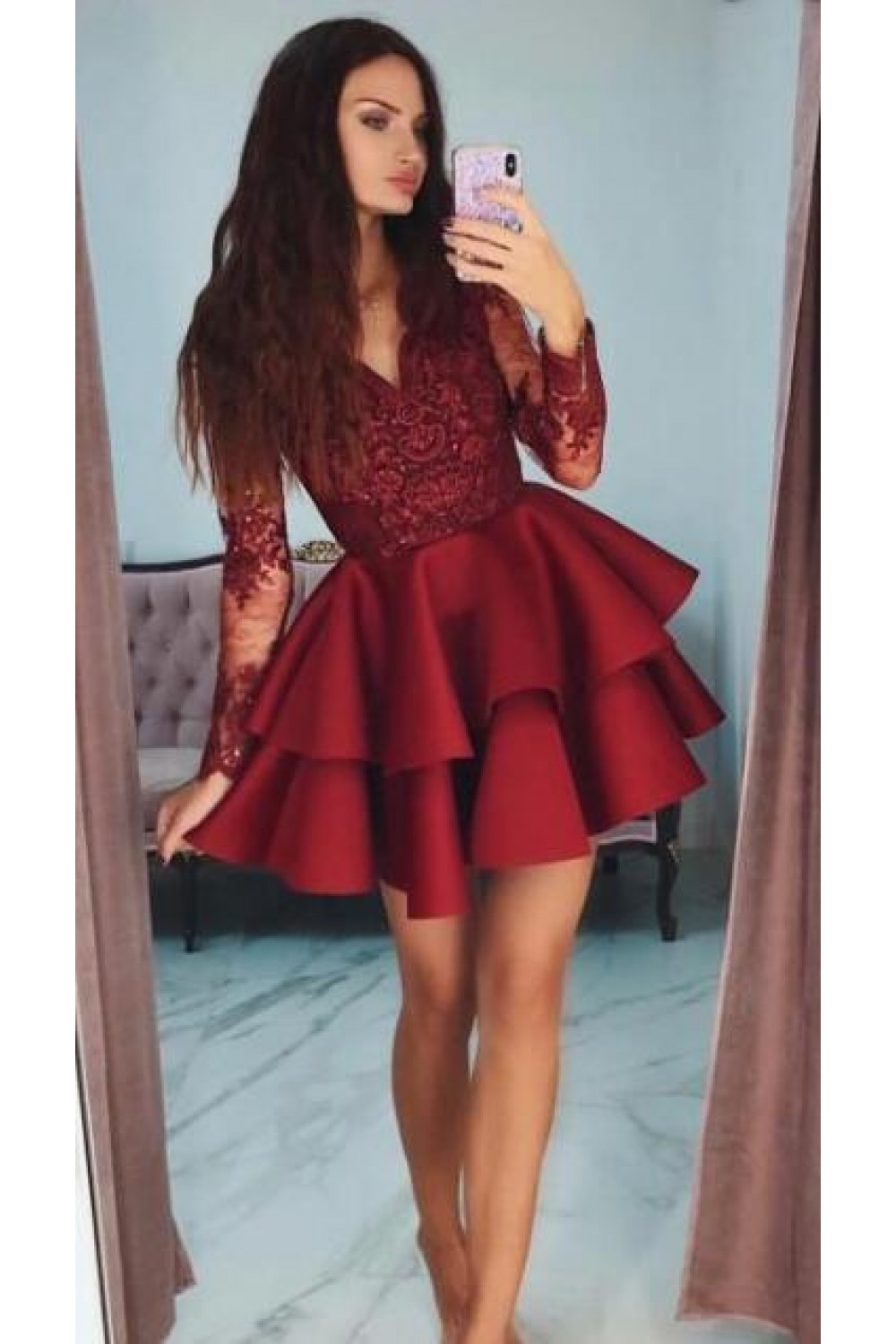 Short Prom Dress Long Sleeves Lace Homecoming Graduation Cocktail Dresses 701160