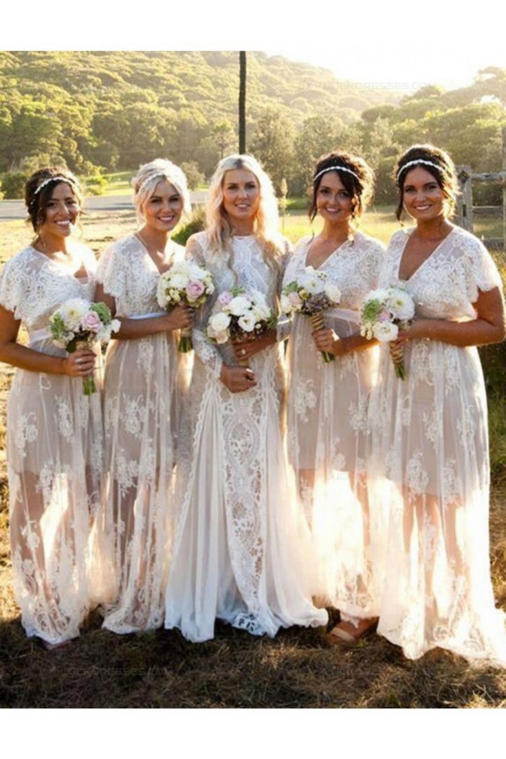 Short Sleeve Lace Long Wedding Guest Dresses Bridesmaid Dresses 3010249