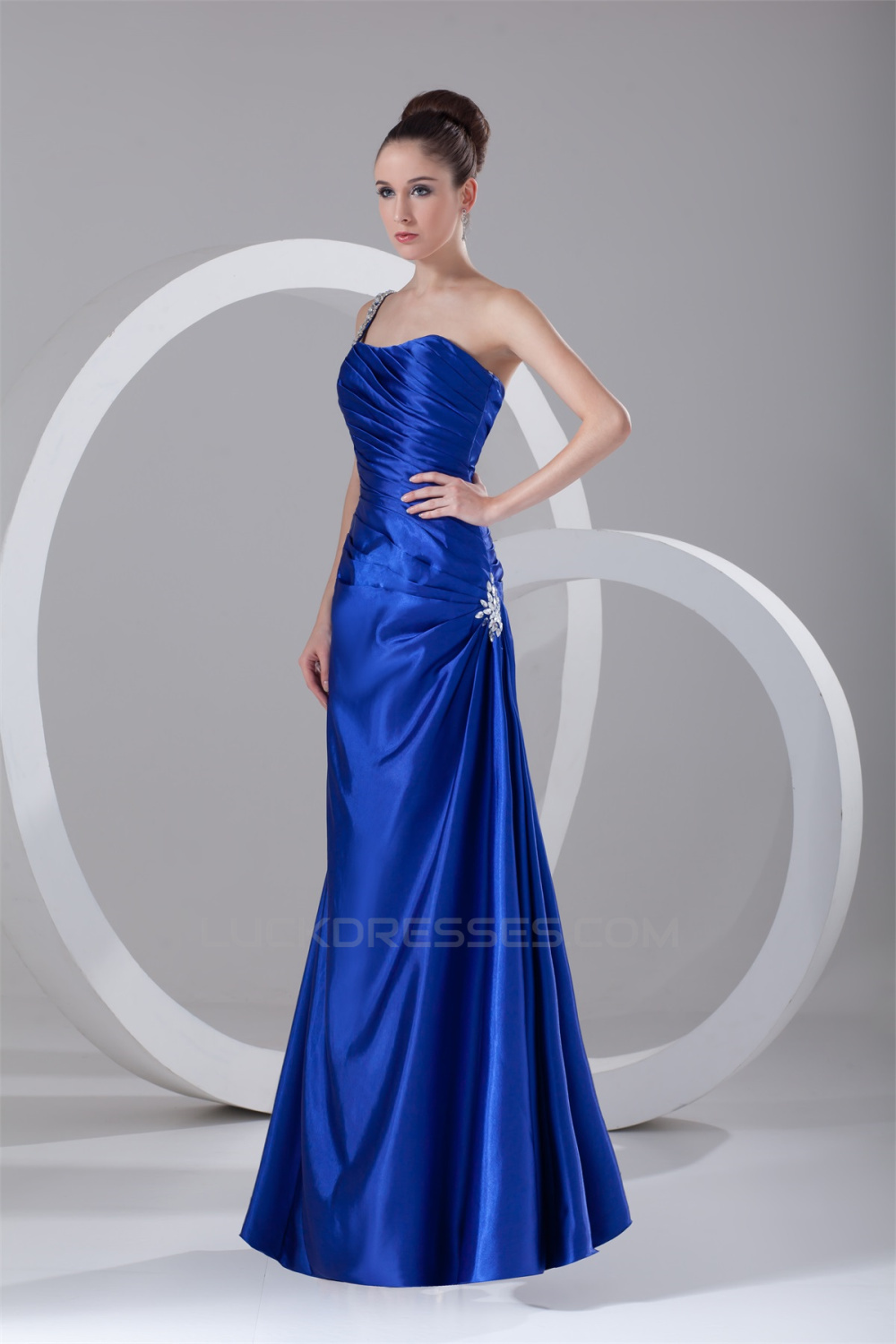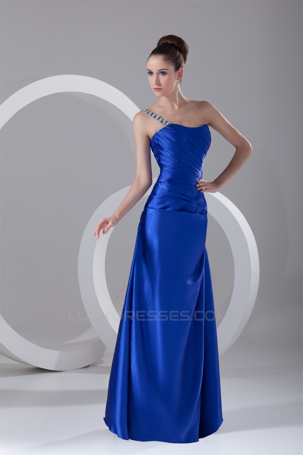 Sleeveless A-Line Pleats One-Shoulder Floor-Length Prom/Formal Evening Dresses 02020857