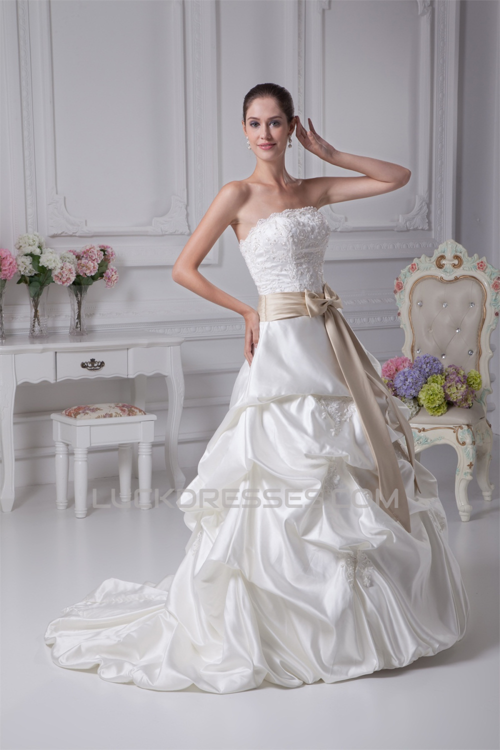 Sleeveless A-Line Satin Strapless Lace New Arrival Wedding Dresses 2030504