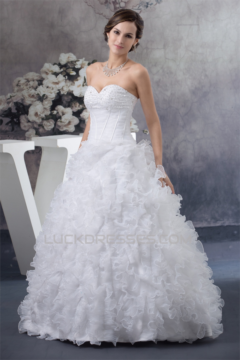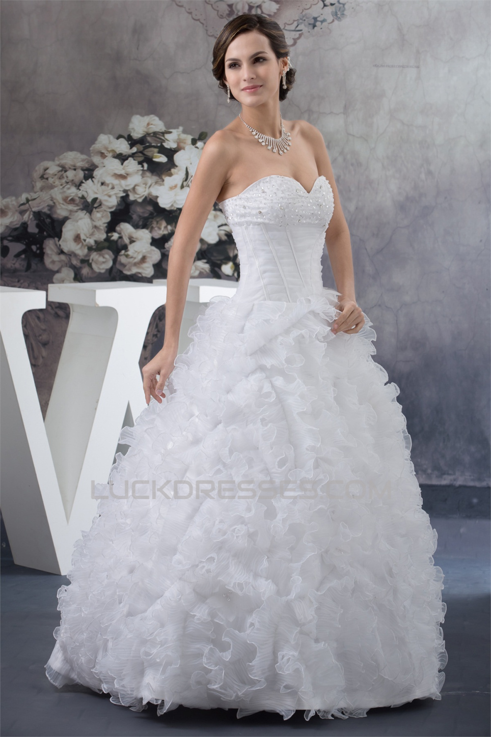 Sleeveless A-Line Sweetheart Satin Organza New Arrival Wedding Dresses 2030357